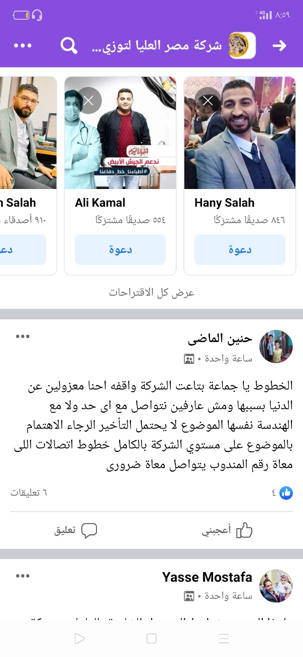فيما رد عامل ثانى قائلا :_ الخطوط يا جماعة بتاعت الشركة واقفه احنا معزولين عن الدنيا بسببها ومش عارفين نتواصل مع اى حد ولا مع الهندسة نفسها الموضوع لا يحتمل التأخير الرجاء الاهتمام بالموضوع على مستوي الشركة بالكامل خطوط اتصالات اللى معاة رقم المندوب يتواصل معاة ضرورى".
