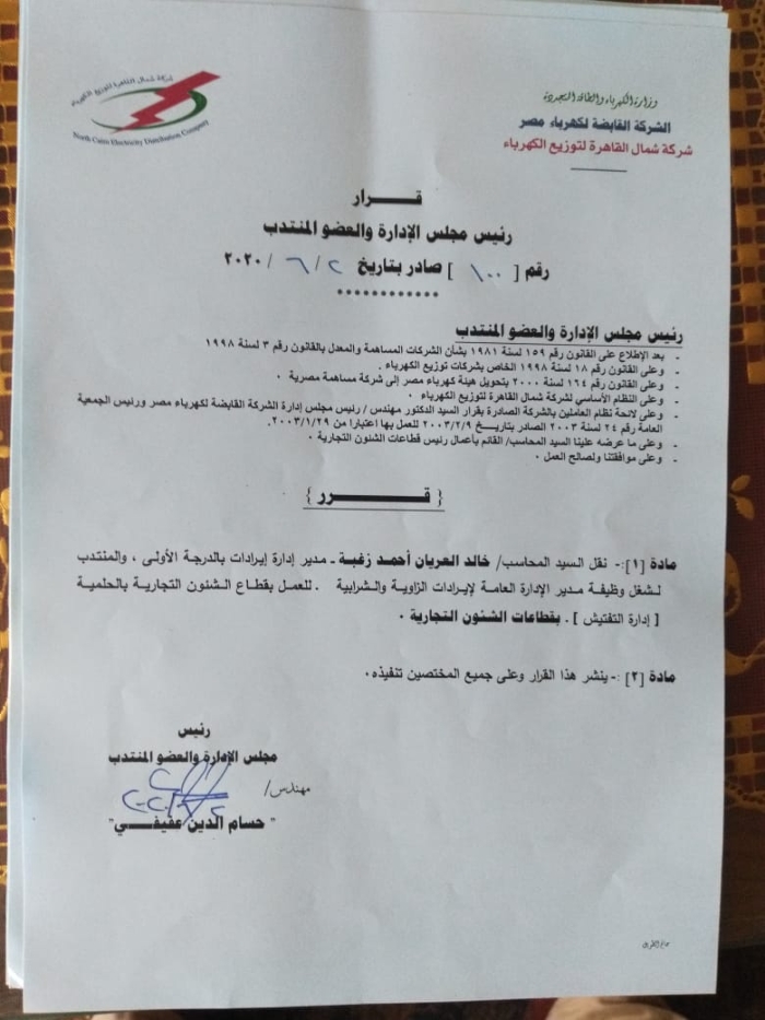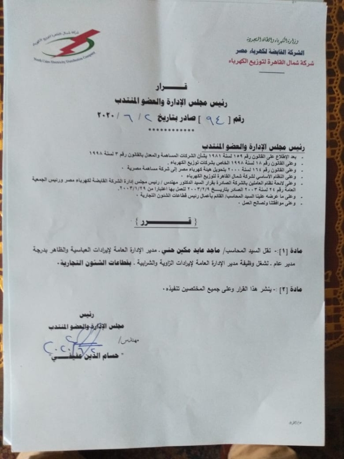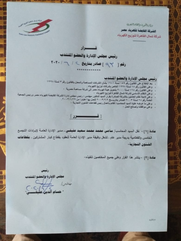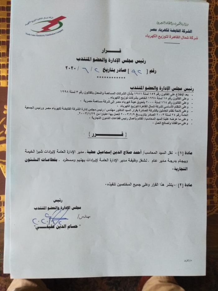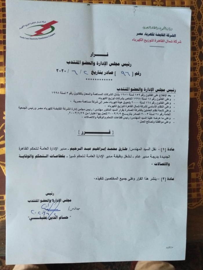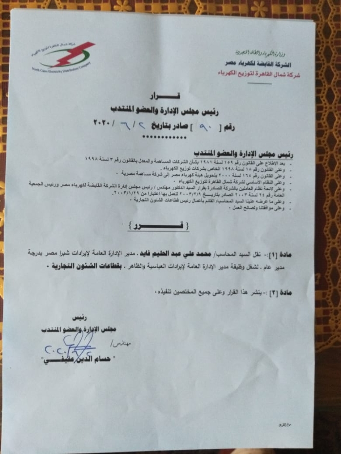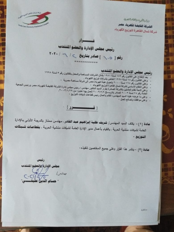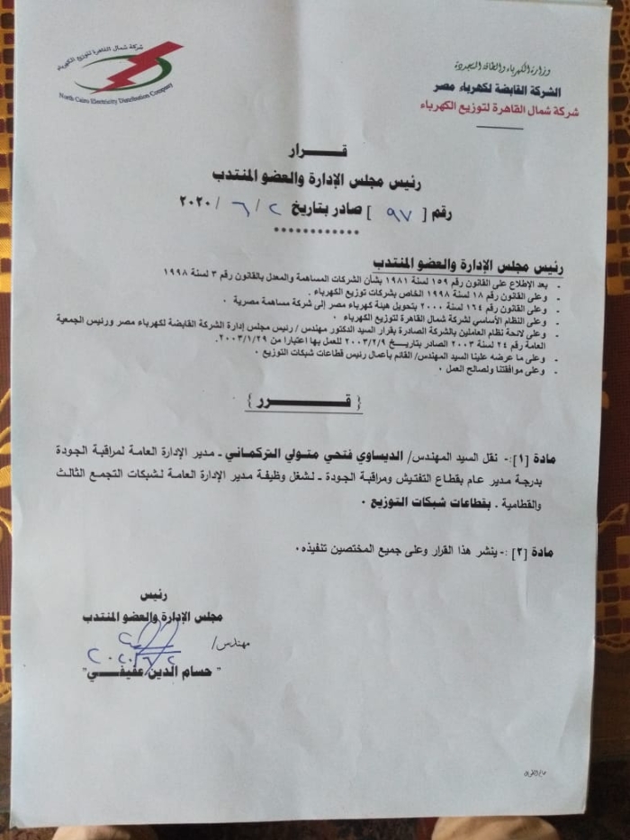 بالأسماء.. عفيفى يصدر أكبر حركة تنقلات وتغييرات بقطاعات شمال القاهرة للكهرباء
