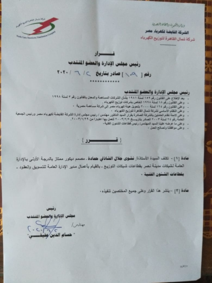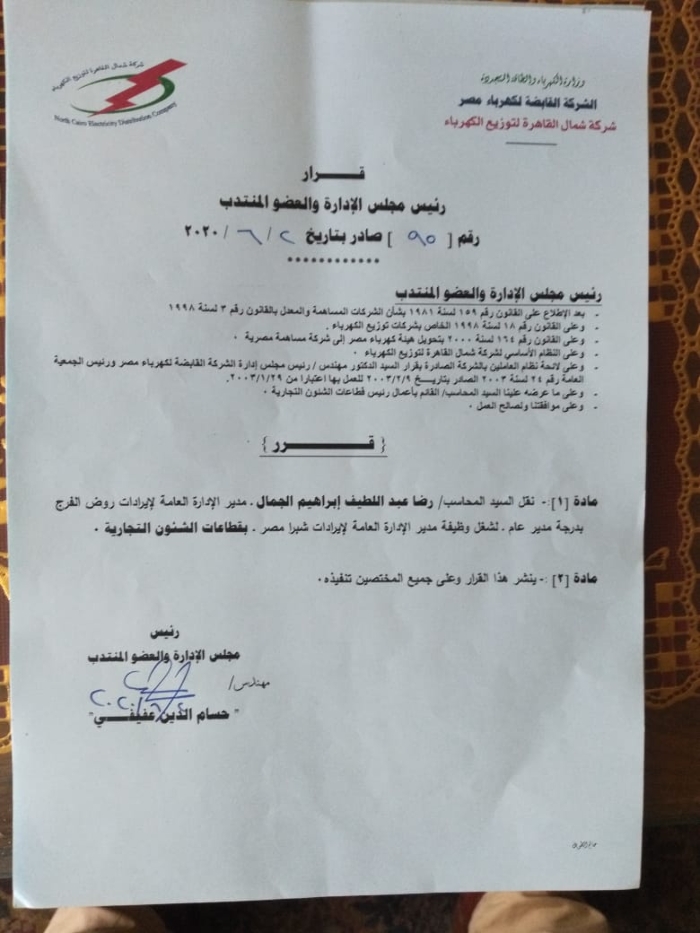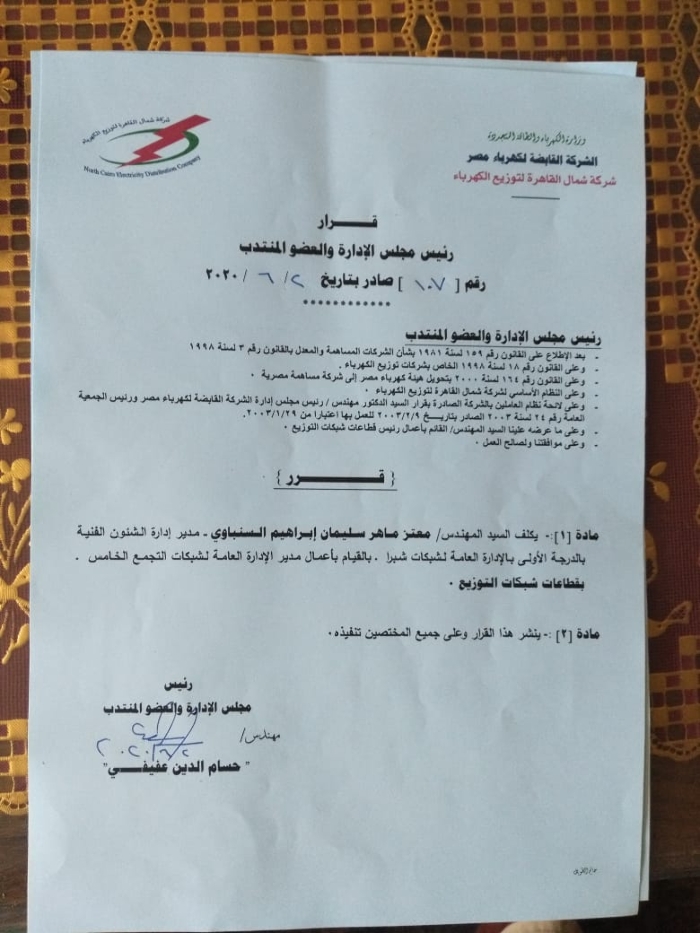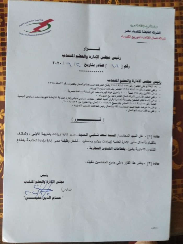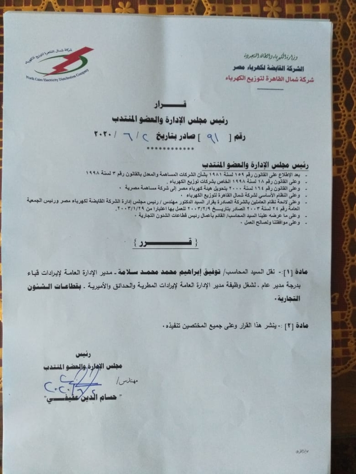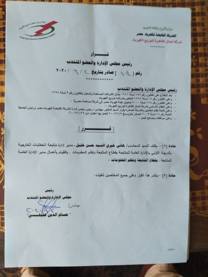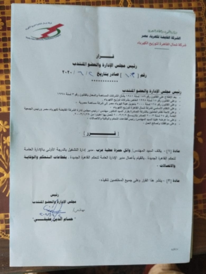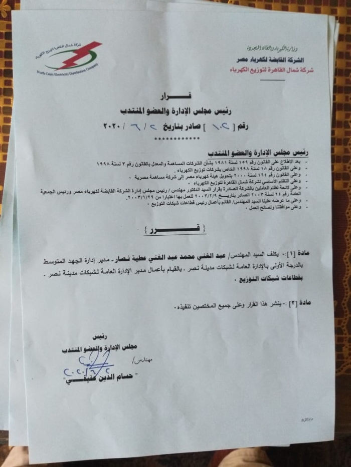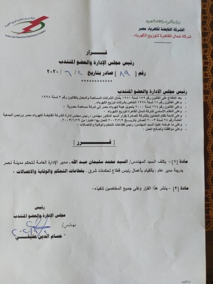 بالأسماء.. عفيفى يصدر أكبر حركة تنقلات وتغييرات بقطاعات شمال القاهرة للكهرباء