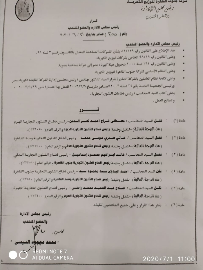 بالأسماء..تفاصيل أكبر حركة تنقلات فى قطاعات الشئون التجارية بجنوب القاهرة للكهرباء