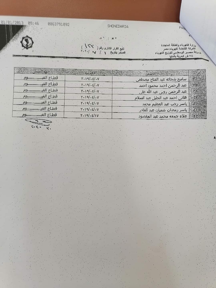 قرار بتثبيت ٤٢ فنى صيانة خطوط بمصر الوسطى للكهرباء