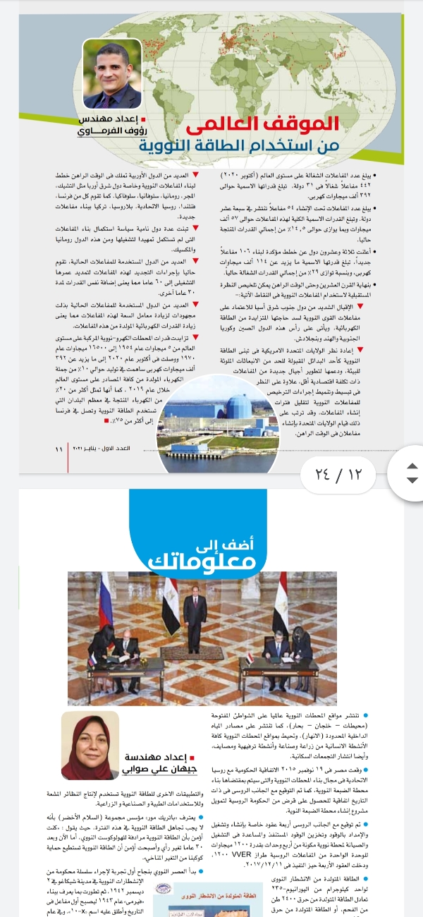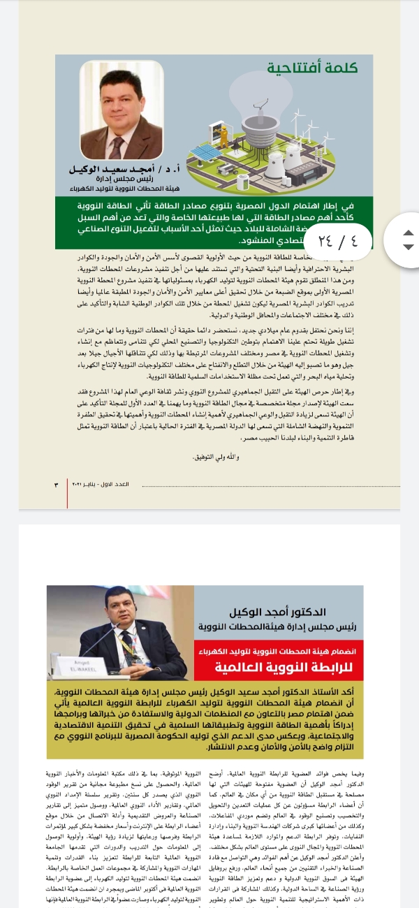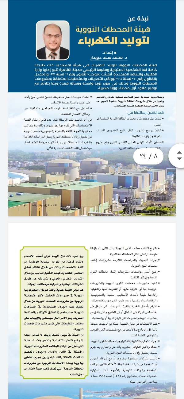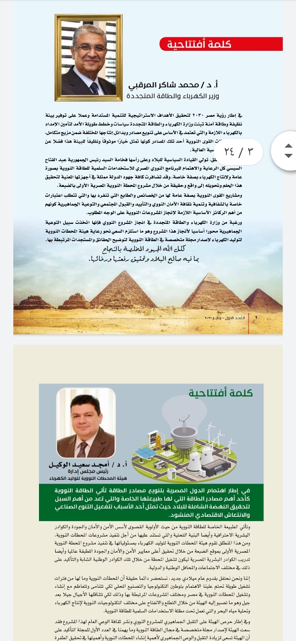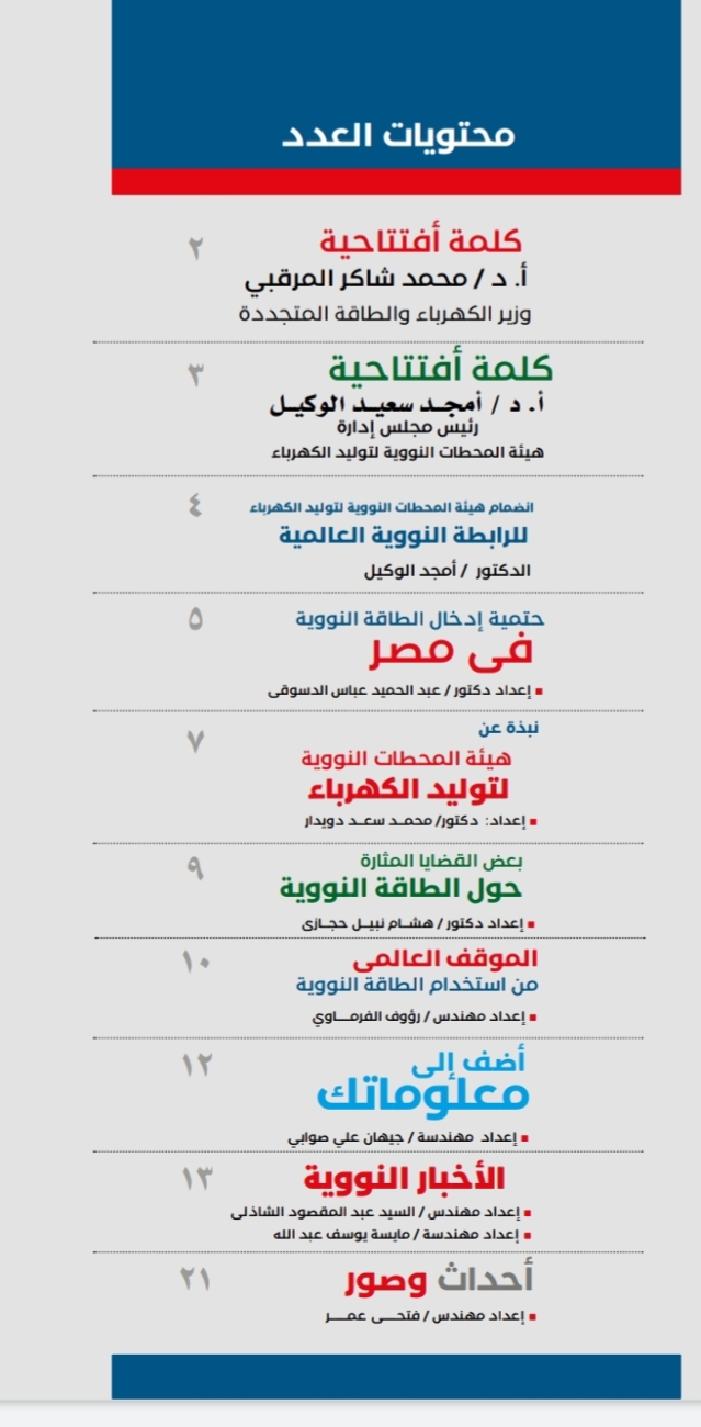 أطلقت هيئة المحطات النووية برئاسة الدكتور أمجد الوكيل رئيس الهيئة المجلة الورقية الخاصة بها وايضا تشمل نسخة الكترونية للمرة الأولى في تاريخها .