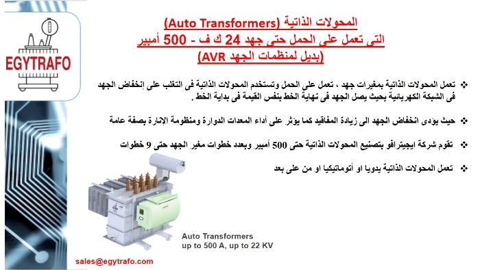 المحولات الذاتية التي تعمل علي الحمل حتی جهد 24 ك ف- 500 أمبير (بديل منظمات الجهد AVR)