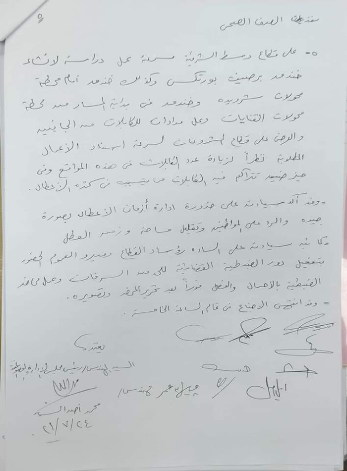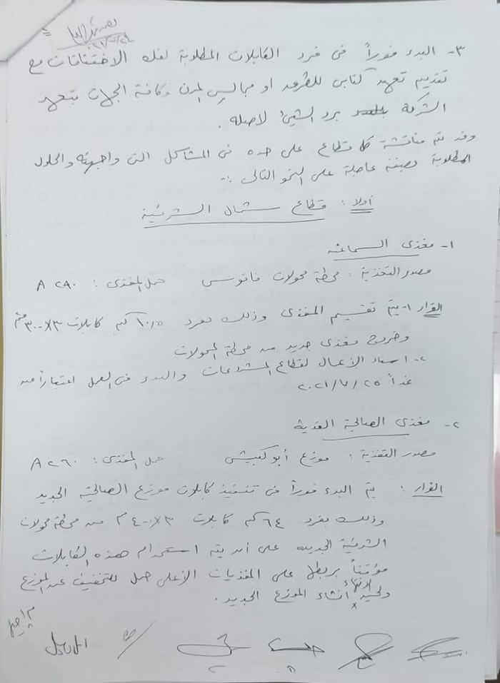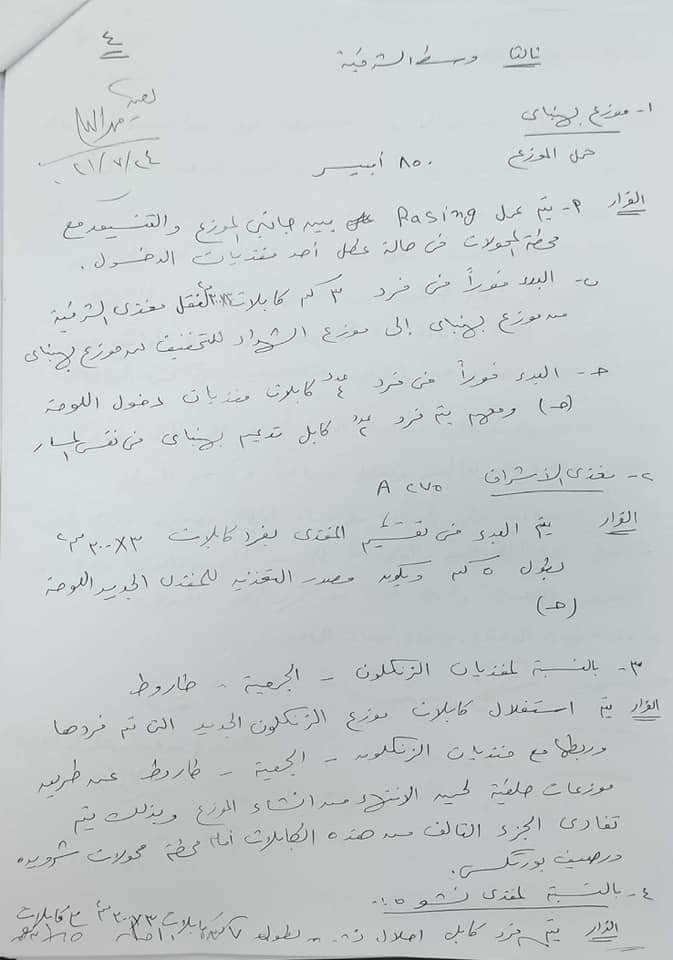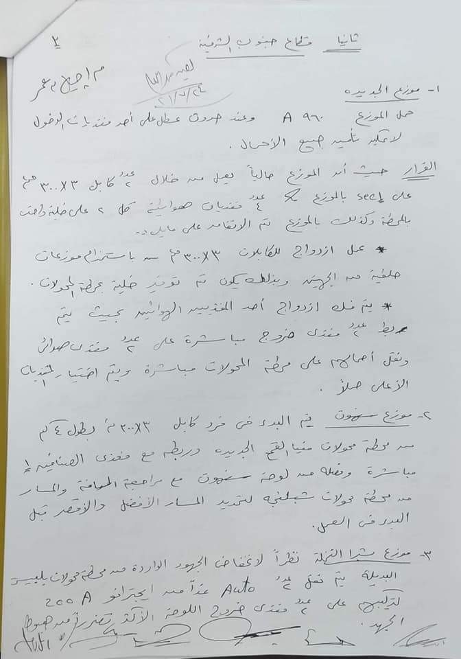 ونوه إلى ضرورة عمل مصادر بديلة للتغذية حتي لا يتأثر المواطنين في حالة وجود اي اعطال وفي نهاية الاجتماع تم عمل عدد من القرارات الفورية والتي سوف يبدا تنفيذها غدا .