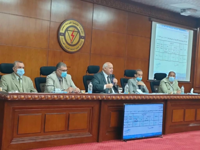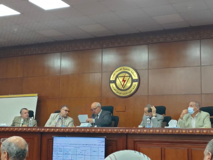 3.مناقشة الاحمال وقدرات المحولات واكد على سرعة الانتهاء من احلال المحولات التى وصلت نسبة تحميلها الى 80%.