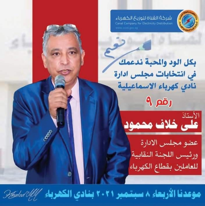 وجه النقابى والقيادى العمالى البارز على خلاف رئيس اللجنة النقابية للعاملين بشركة القناة للكهرباء وعضو مجلس إدارة الشركة ، الشكر والتقدير لكافة زملائه العاملين مما وقفوا بجواره وحظى بثقتهم ودعمهم فى انتخابات نادى كهرباء القناة..