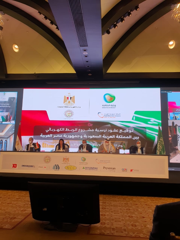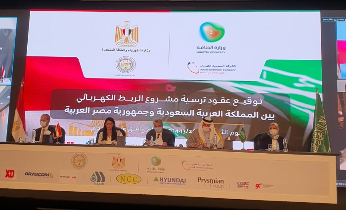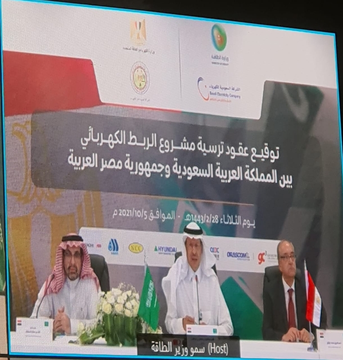 بحضور صاحب السمو الملكى الأمير عبدالعزيز بن سلمان وزير الطاقة ومعالى الدكتور محمد شاكر المرقبى وزير الكهرباء والطاقة المتجددة في جمهورية مصر العربية وقعت الشركة السعودية للكهرباء وشركة نقل الكهرباء المصرية عقود ترسية مشروع الربط الكهربائى بين المملكة العربية السعودية وجمهورية مصر العربية.