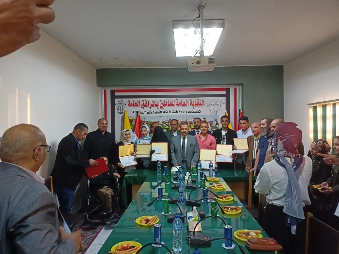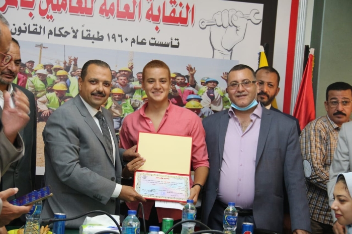 أقيم ،اليوم،بمقر النقابة برمسيس برئاسة ورعاية المستشار هشام فؤاد رئيس النقابة العامة للعاملين بالمرافق ونائب رئيس اتحاد عمال مصر بحضور قيادات النقابة العامة وبعض رؤساء اللجان النقابية بوزارات الكهرباء والإسكان ومياه الشرب والصرف الصحى إحتفالية لتكريم المتفوقين والمتميزين من أبناء العاملين فى الثانوية العامة والشهادات المناظرة الحاصلين على درجات عليا..