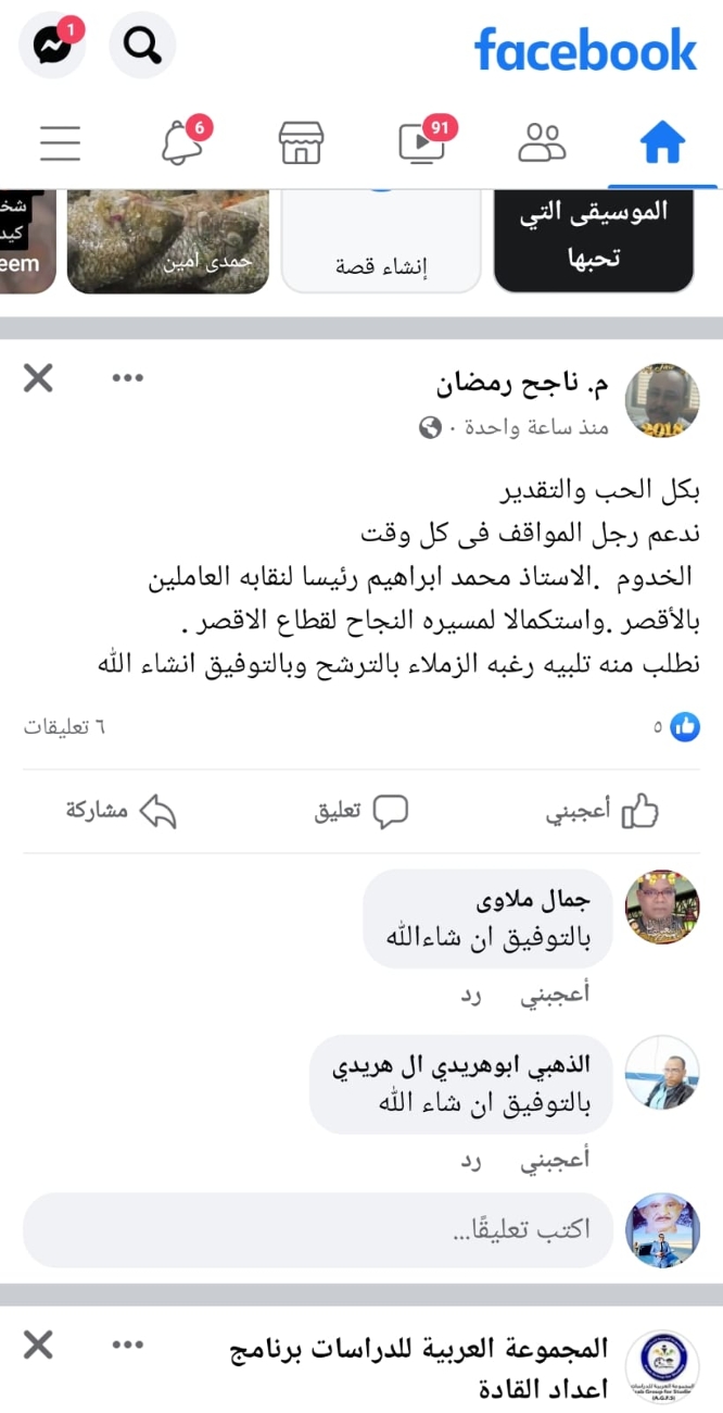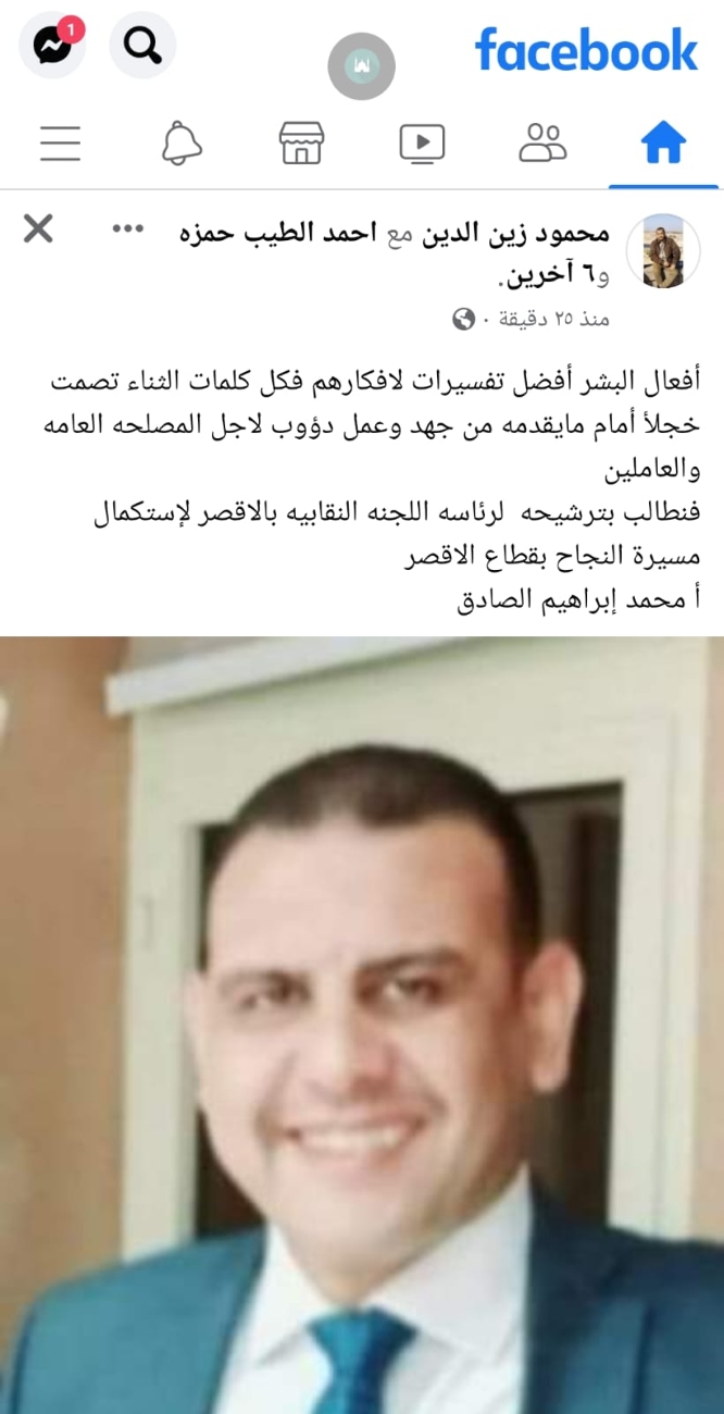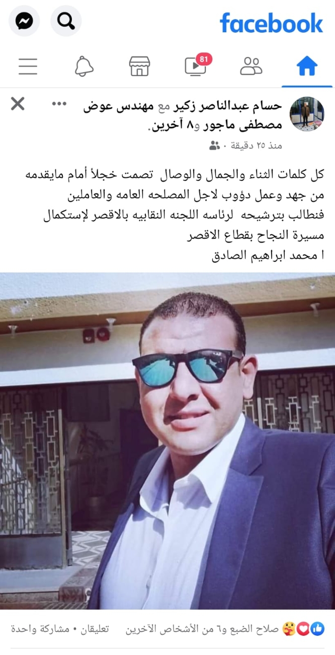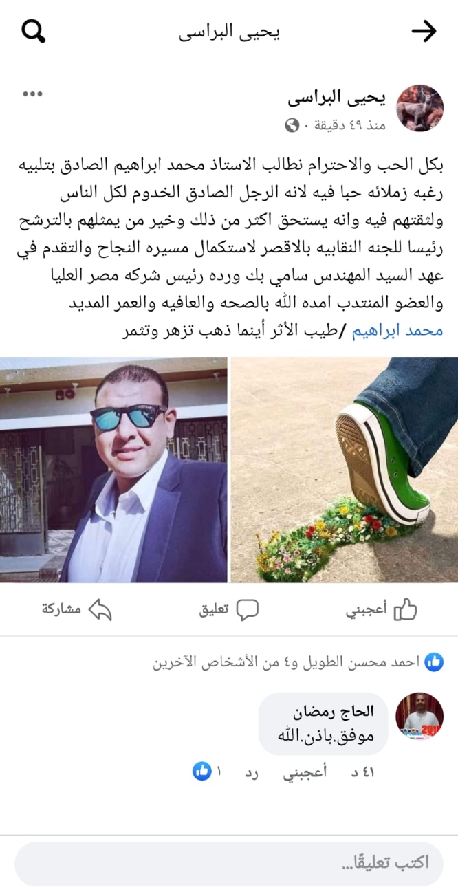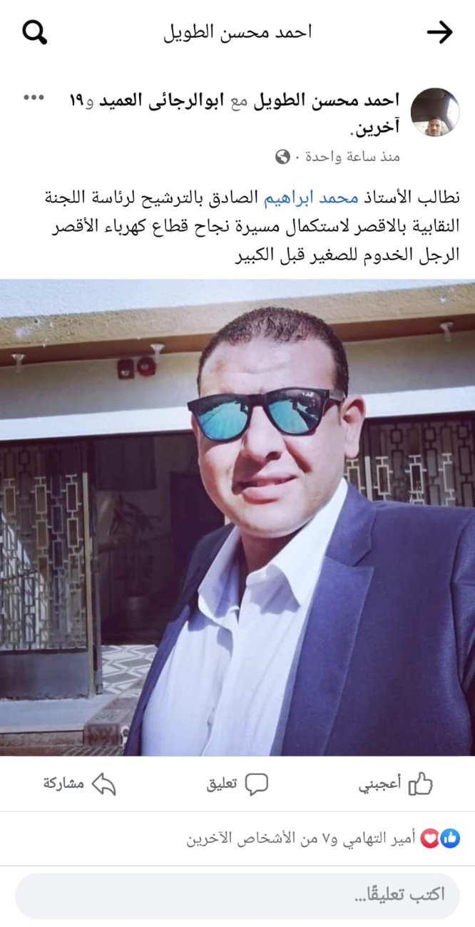 وسط تأييد ودعم حاشد.."محمد إبراهيم" يعلن ترشحه لمقعد رئاسة اللجنة النقابية بالأقصر