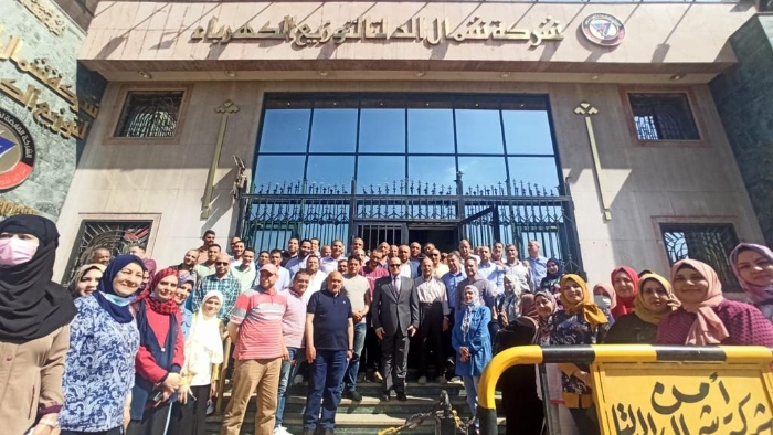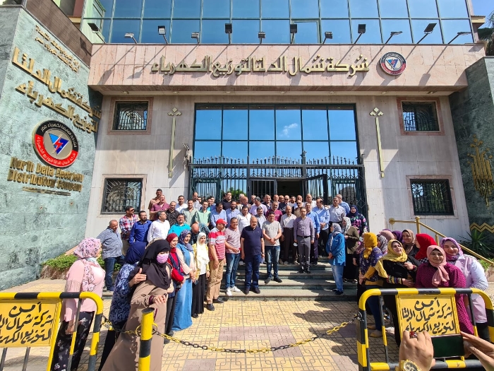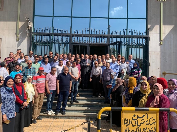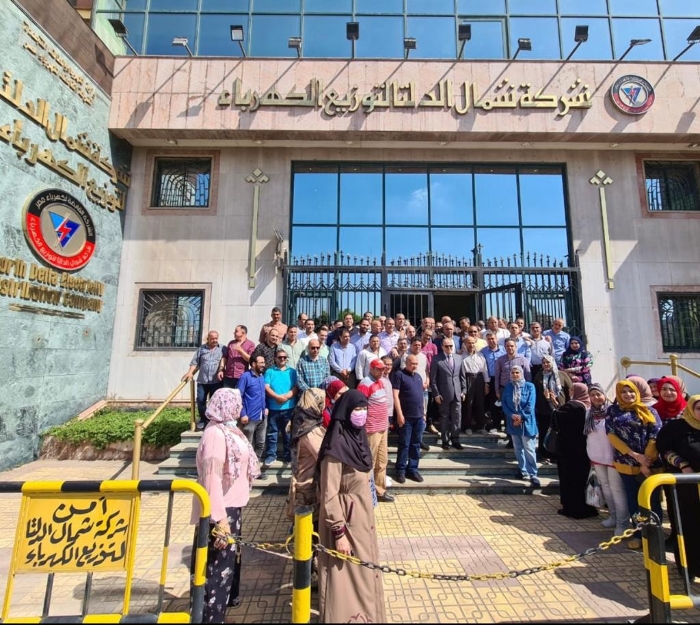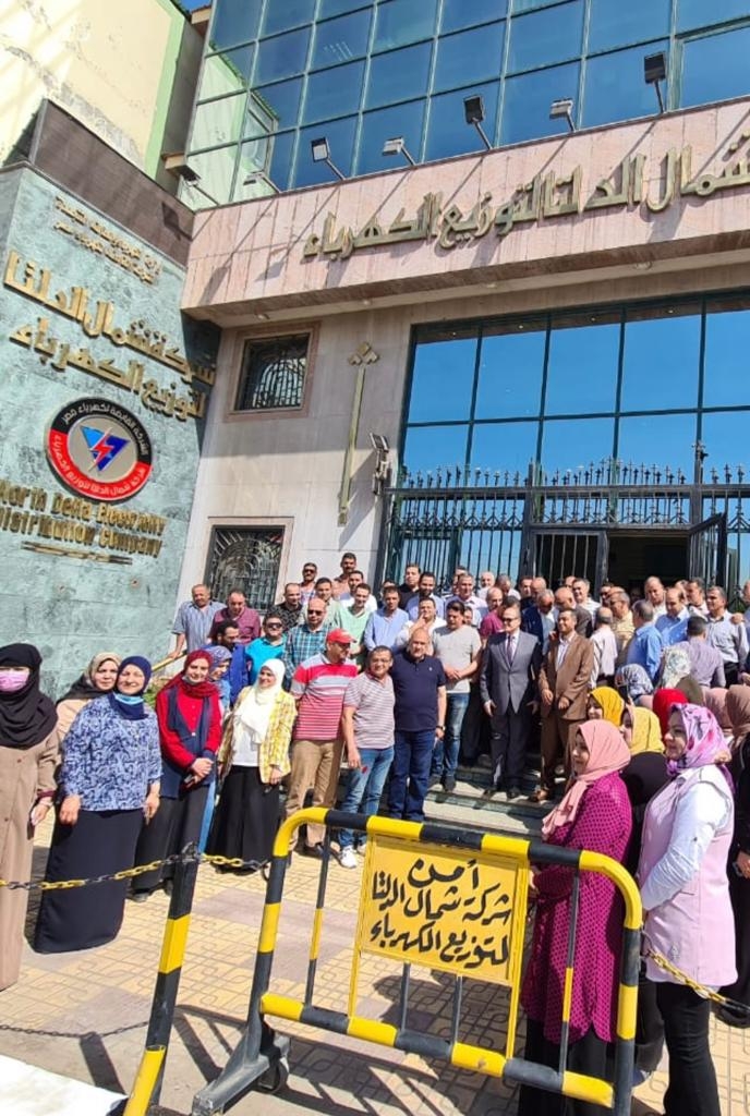 مظاهرة حاشدة للعاملين ب"شمال الدلتا" للكهرباء إحتفاءا بتجديد الثقة فى "عسل"