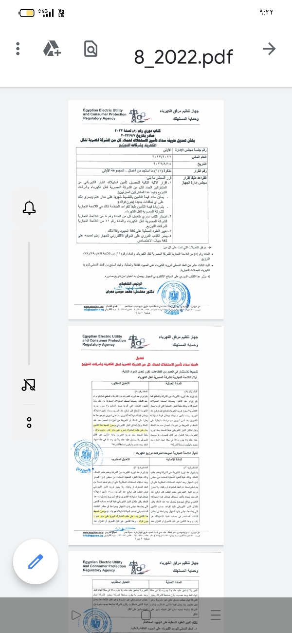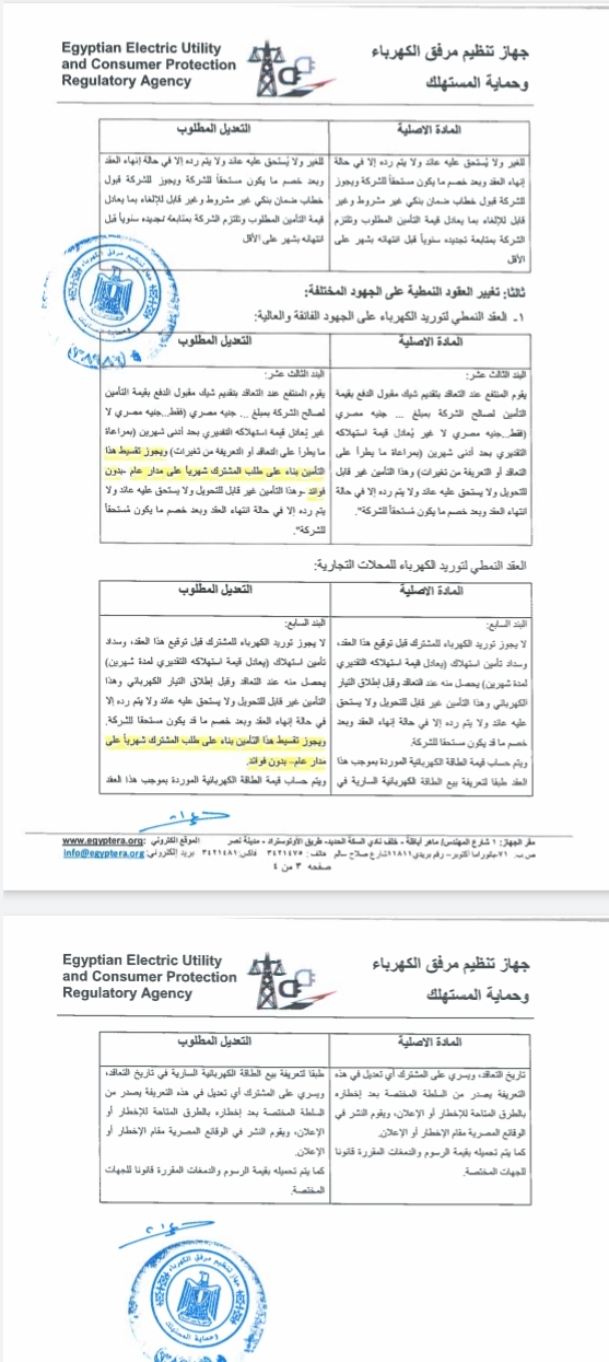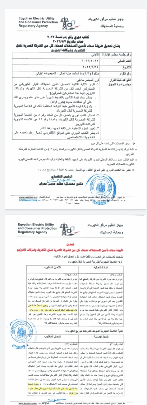 وبناء عليه أصدر الجهاز الكتاب الدوري رقم 8 لسنة 2022 بتاريخ 7 سبتمبر 2022 المتضمن اليه تحصيل تأمين استهلاك التيار الكهربائي من المشتركين الجدد لكل من الشركة المصرية لنقل الكهرباء وشركات التوزيع بالتقسيط على مدار عام (بدون فوائد).