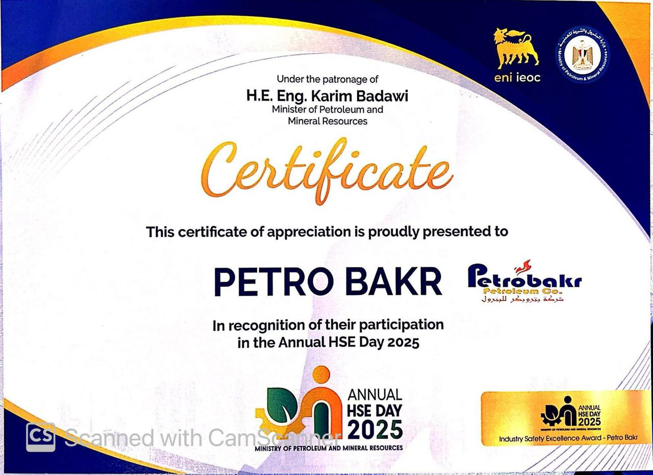 في إنجاز يعكس عمق الرؤية والتطبيق العملي للقيادة الرشيدة لوزارة البترول ، كرّم المهندس كريم بدوي - وزير البترول والثروة المعدنية، شركة بتروبكر للبترول، مانحاً إياها المركز الأول في مجال السلامة والصحة المهنية وحماية البيئة.