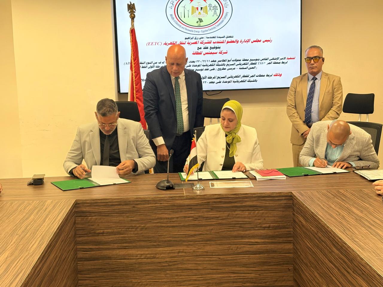 وقعت اليوم المهندسة منى رزق رئيس مجلس إدارة الشركة المصرية لنقل الكهرباء عقدًا مع شركة سيمنس للطاقة، وذلك بحضور كل من المهندس أحمد فتحي رئيس قطاعات المشروعات المركزية، والمهندسة زينب قمر رئيس قطاع المشروعات المركزية للجهد الفائق.