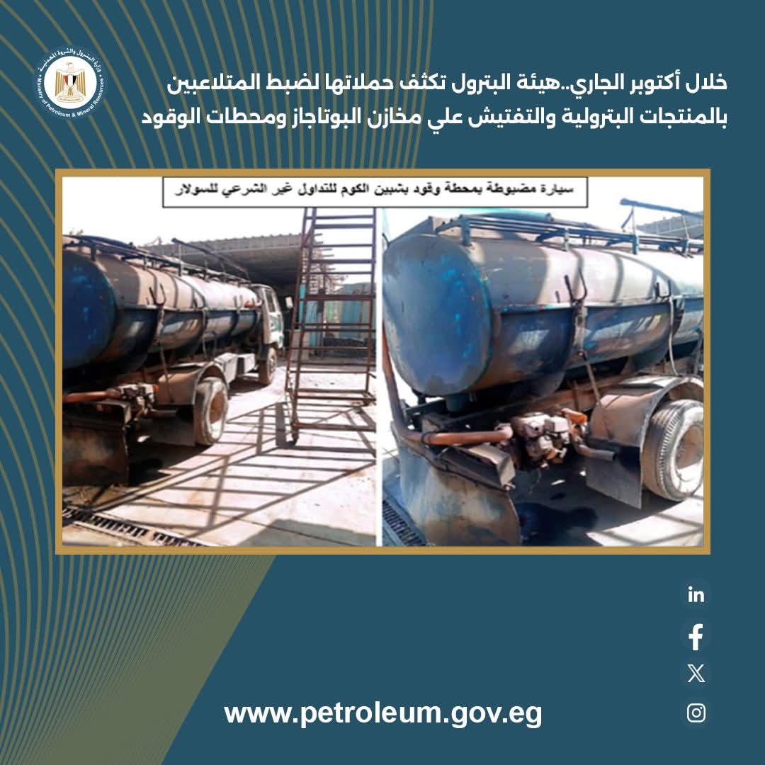 خلال أكتوبر الجاري.. هيئة البترول تكثف حملاتها لضبط المتلاعبين بالمنتجات البترولية والتفتيش علي مخازن البوتاجاز ومحطات الوقود