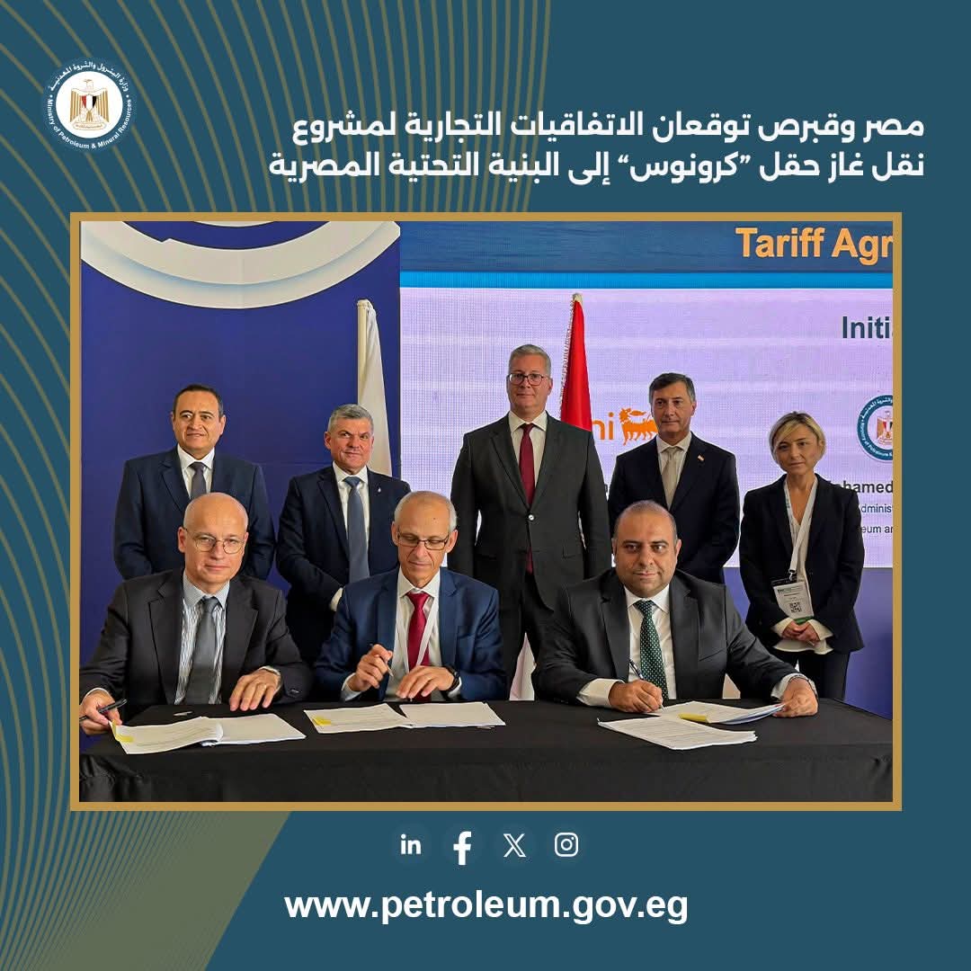 خلال مشاركته في مؤتمر ومعرض شرق البحر المتوسط للطاقة (EMC) بمدينة ليماسول القبرصية، شهد المهندس كريم بدوي وزير البترول والثروة المعدنية، ونظيره القبرصي جورج بابانستاسيو، توقيع الاتفاقيات الخاصة بمشروع نقل غاز حقل "كرونوس" القبرصي إلى مصر، لربطه بالبنية التحتية لقطاع الغاز المصري.