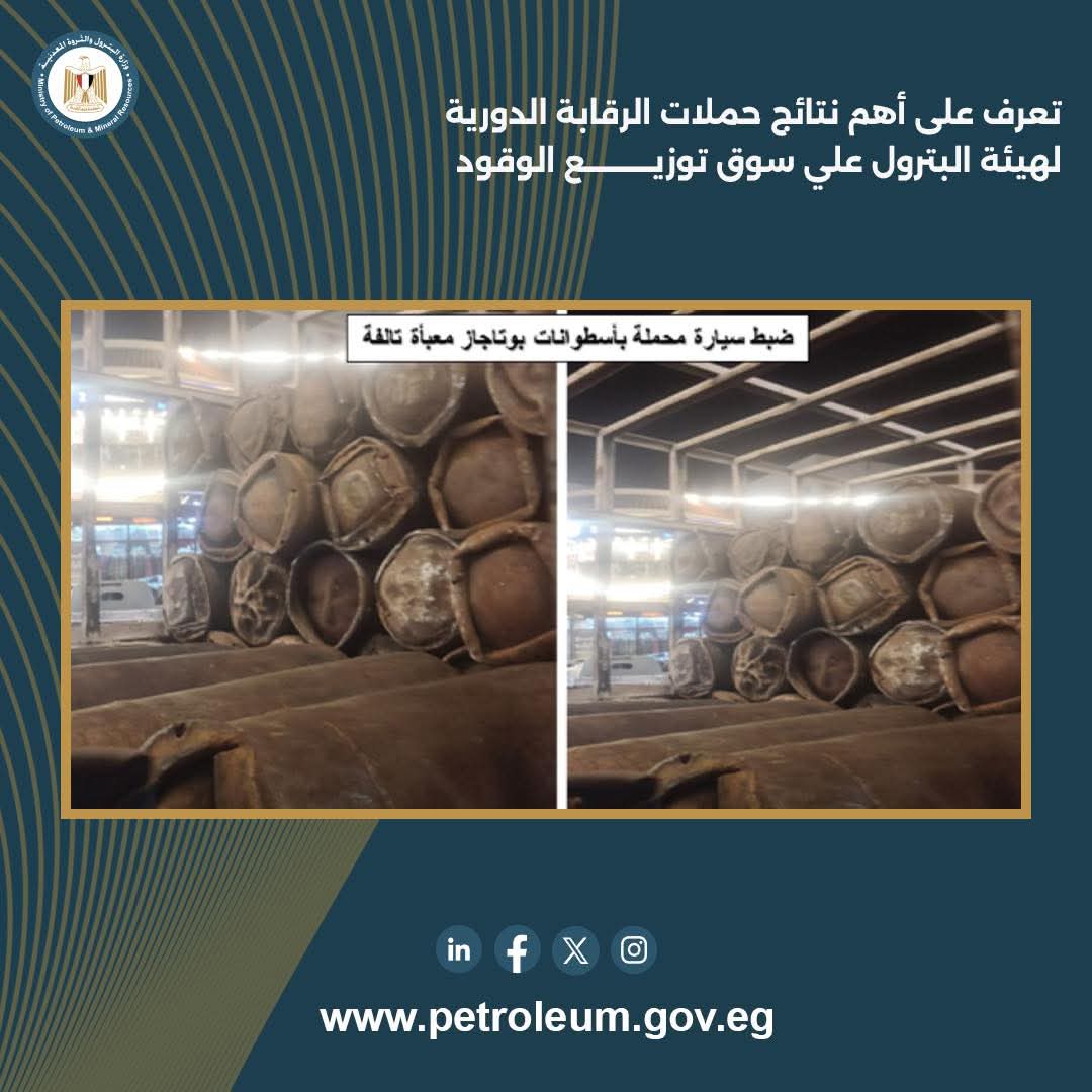 استمراراً للدور الرقابي للهيئة المصرية العامة للبترول في إحكام السيطرة على تداول المنتجات البترولية، تمكنت اللجنة المركزية للرقابة على التداول بالهيئة من ضبط عدد من محطات الوقود المتورطة في الإتجار غير المشروع والتلاعب بكميات من المنتجات البترولية بلغت نحو 400 ألف لتر، وذلك في محافظات الإسكندرية وكفر الشيخ والبحيرة والشرقية وبورسعيد.