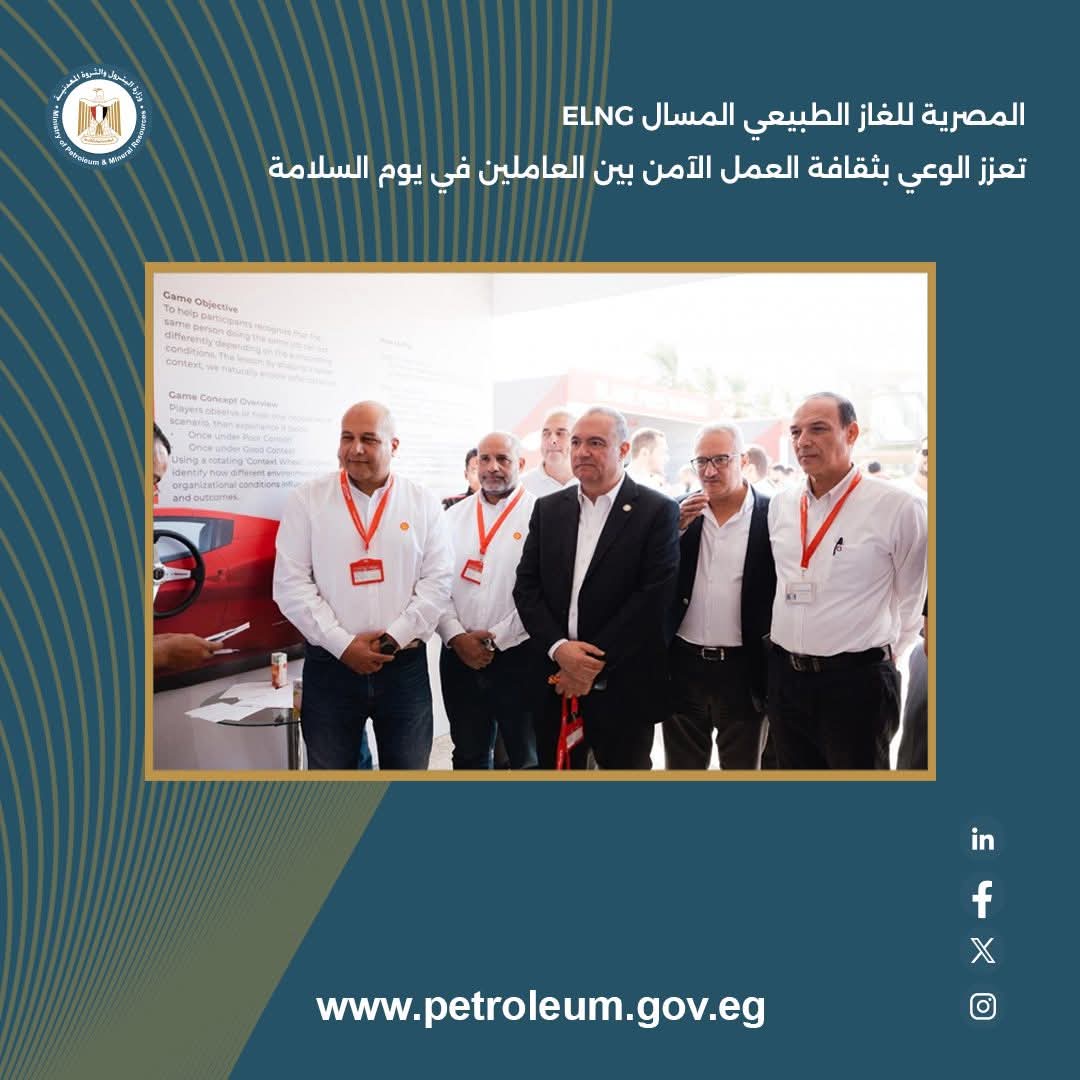 و أكدت الشركة المصرية للغاز الطبيعي المسال أن يوم السلامة يأتي تأكيداً لالتزامها بدمج السلامة في ثقافة العمل ، إذ يشكل منصة سنوية لتعزيز الوعي وترسيخ السلوكيات الأمنة بين العاملين، كما يتيح الفرصة للتفاعل وتبادل الخبرات ومناقشة أفضل الممارسات لضمان سلامة الأفراد والمعدات وحماية البيئة .