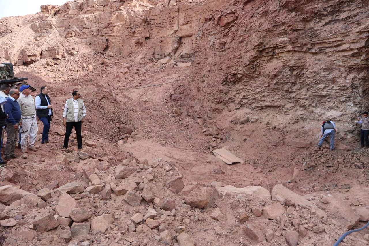 تفقد الدكتور محمود عصمت خطوط الإنتاج والتصنيع والأعمال المنفذة من استكشاف وتقييم وتعدين للخامات الأرضيّة الحاملة للعناصر الأرضية والفلزات النادرة والتي تمثل عصب الصناعات التكنولوجية والالكترونية الحديثة، وناقش خبراء الهيئة والكوادر القائمة على المشروع فى طبيعة تواجد وجيولوجية الخامات المتوافرة وطرق ووسائل التعدين والاستخلاص والتحديات التى تجابه طبيعة العمل، وكيفية التعامل معها ووسائل الدعم اللازمة للمركز الحقلى بأبو زنيمة فى ظل ما يساهم به الموقع ومايمتلكه من كوادر بشرية ومقدرات تقنية فى العديد من أوجه التنمية والعديد من المشروعات القومية التى تزخر بها سيناء ويجرى العمل عليها خلال المرحلة الحالية، ومساهمة المركز فى وضع استراتيجية تنمية سيناء خاصة محور التعدين والصناعات القائمة على الخامات التعدينية.