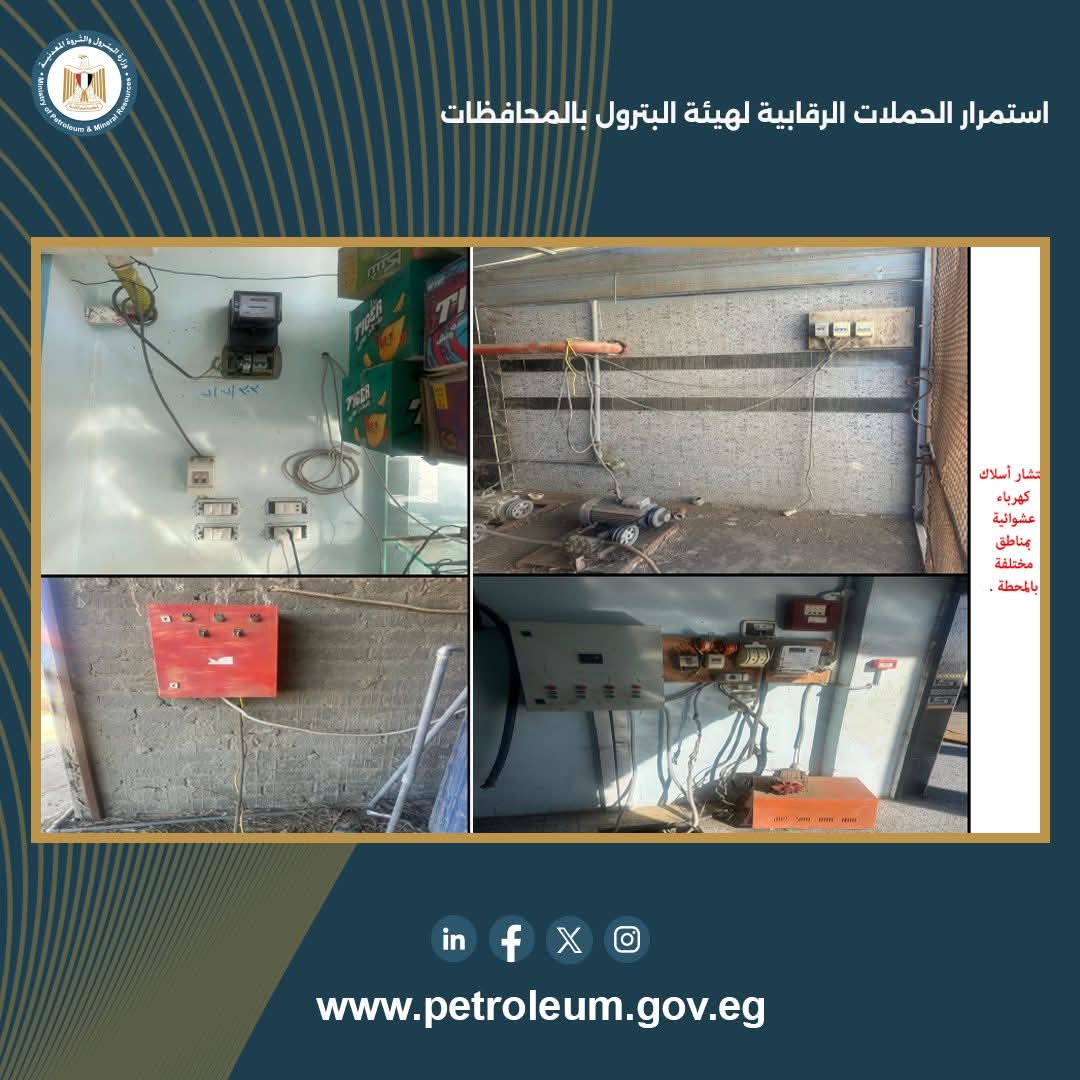 كما قامت اللجنة بالمرور على 36 محطة وقود في 10 محافظات، حيث تم رصد عدد من المخالفات الفنية، كان أبرزها سوء النظافة وتراكم المخلفات داخل المحطة، وعدم الالتزام بتعليمات السلامة أثناء عمليات تفريغ السيارات الصهريجية، وتشغيل المحطات خلال التفريغ بما يمثل خطورة شديدة، إضافة إلى تشغيل طلمبات تموين غير صالحة فنيًا وتستلزم الاستبدال أو الإيقاف، و الوصلات الكهربائية العشوائية واللوحات غير المؤمّنة.