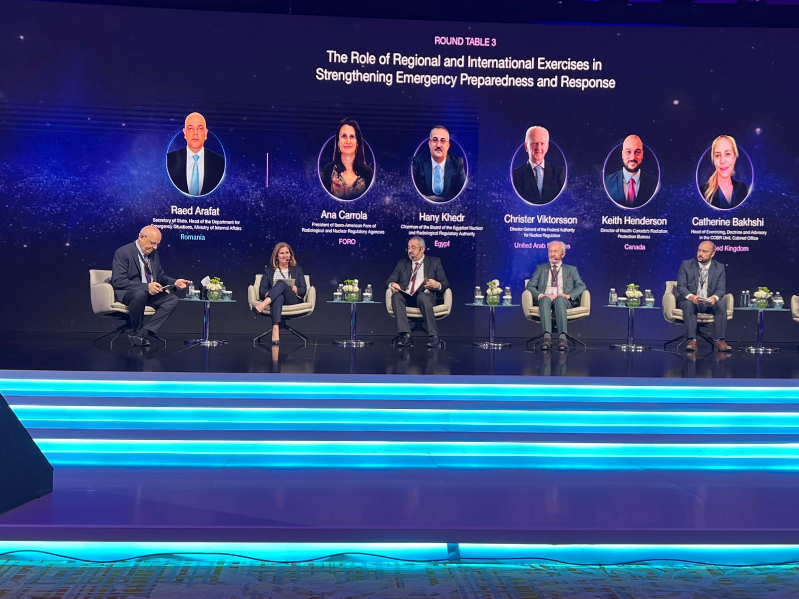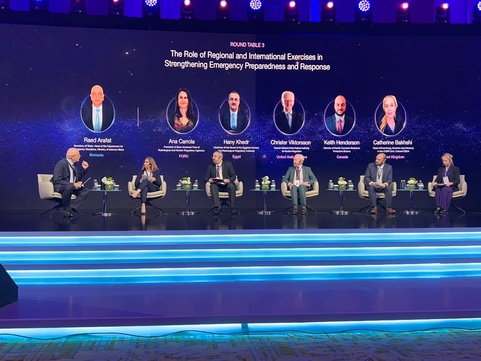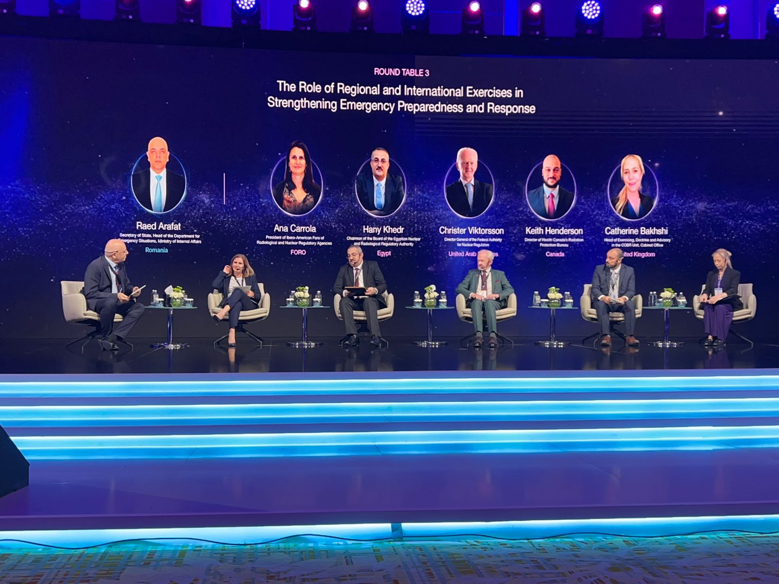 "دور التمارين الإقليمية والدولية في تعزيز التأهب والاستجابة للطوارئ النووية والإشعاعية"، وذلك ضمن فعاليات المؤتمر الدولي للطوارئ النووية والإشعاعية المنعقد في المملكة العربية السعودية بالتعاون مع الوكاله الدولية للطاقة الذرية.