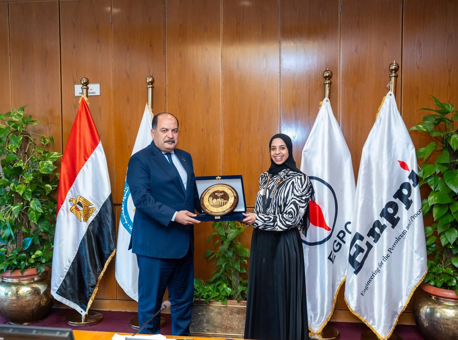 وقد قام المهندس خالد إبراهيم رئيس مجلس الإدارة والعضو المنتدب لشركة إنــبي بتكريم البطلة ومنحها شهادة تقدير ودرع الشركة، بحضور المهندس ياسر عبد الرؤوف مساعد رئيس الشركة للشئون الهندسية، معرباً عن فخره واعتزازه بهذا الإنجاز الذي يسهم في رفع اسم مصر على منصات التتويج العالمية، خاصة في ضوء تصدر منتخب مصر للكاراتيه الترتيب العام لدول العالم في البطولة، وما حظي به هذا الإنجاز من إشادة وتهنئة من السيد الرئيس عبد الفتاح السيسي رئيس جمهورية مصر العربية عبر حسابه الرسمي.