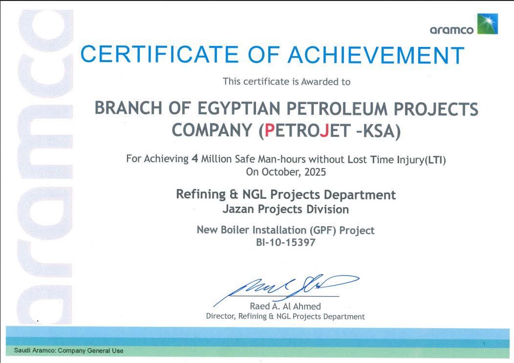 ويعكس الإنجاز التزام بتروجت الراسخ بتطبيق أعلى المعايير العالمية في مجال السلامة والصحة المهنية ، وتحقيق التميز التشغيلي، وترسيخ مكانتها كشريك EPC موثوق به في المملكة العربية السعودية.