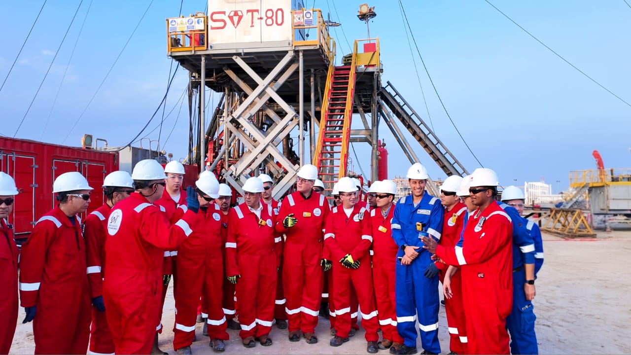 وعقب ذلك، توجه الوزير إلى أحد مواقع الحفارات التابعة للشركة، وتابع سير العمليات ميدانيًا، واطمأن على الالتزام بمعايير السلامة والصحة المهنية، وحرص على لقاء العاملين بالموقع وحثهم على مواصلة العمل الآمن وبذل المزيد من الجهد لتعزيز أعمال الشركة خارج مصر.