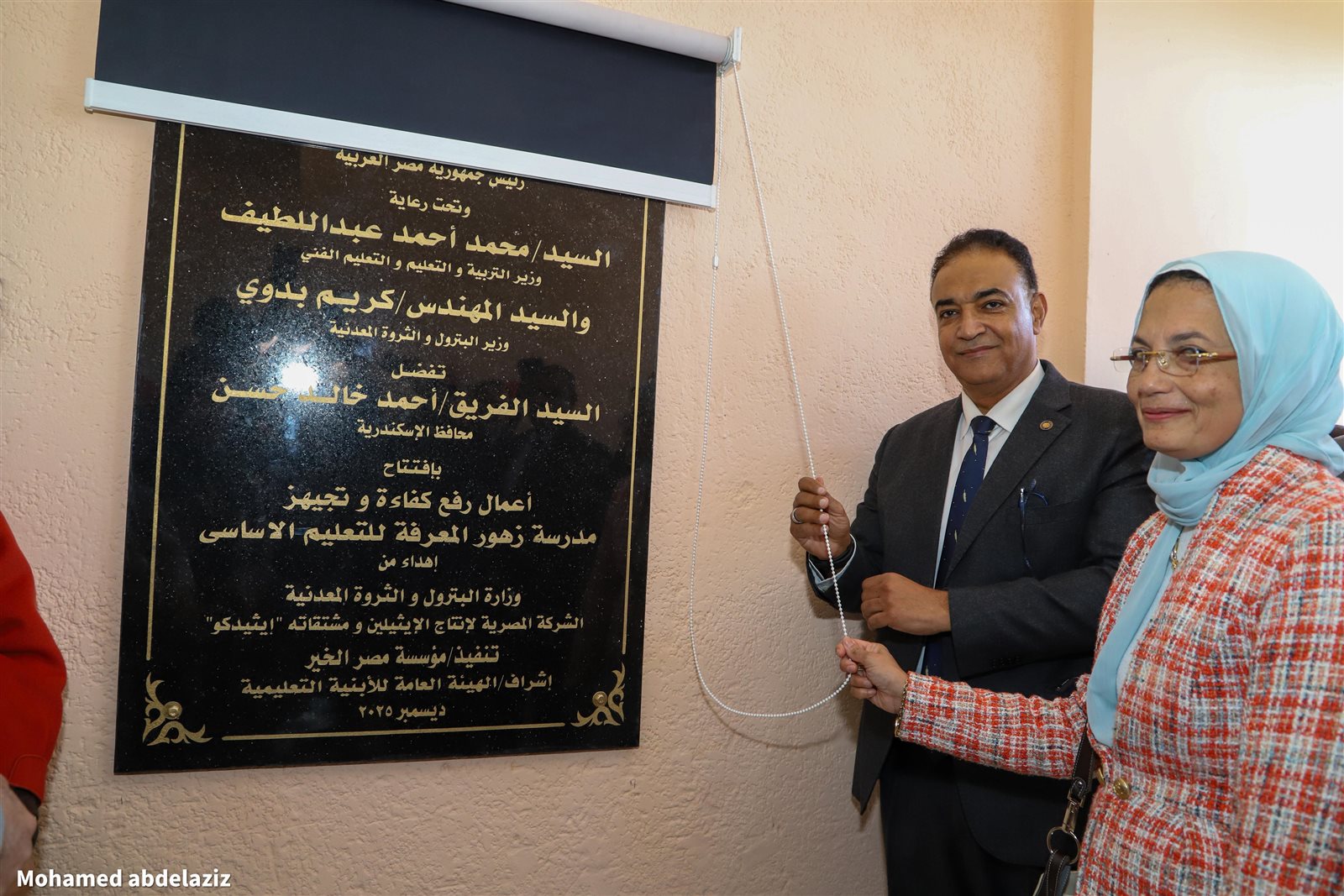 شهد الافتتاح الكيميائى / هشام رياض رئيس الشركة المصرية لإنتاج الإيثيلين ومشتقاته "إيثيدكو" والمهندسة/ أمل مبدى رئيس قطاع تنمية الموارد بمؤسسة مصر الخير للتنمية ، و الأستاذ/ سيد الأزوك مدير عام الإدارة التعليمية بالعامرية .
