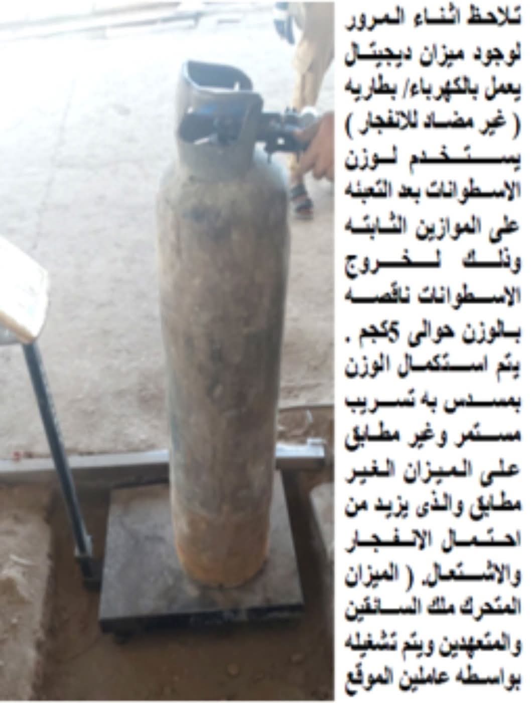 ⭕ تم التفاعل مع الشكوى المقدمة ضد أحد مصانع تعبئة أسطوانات البوتاجاز بالجيزة وإجراء مراجعة شاملة على المصنع، وتبين وجود نقص في أوزان غالبية الأسطوانات المعدة للبيع للجمهور عن الأوزان الرسمية ، وقصور في إجراءات الفرز واستبعاد الأسطوانات التالفة غير الصالحة للتداول قبل التعبئة، والسماح لسيارات غير صالحة فنياً ومتهالكة بالدخول وتحميل الأسطوانات لتوزيعها على المخازن بما يمثل خطورة شديدة، كما تبين أن منظومة الإطفاء والإنذار بحاجة للصيانة، وتم اتخاذ الإجراءات اللازمة بالتنسيق مع الشركة المعنية بتشغيل المصنع، وتحرير محضر بالمخالفات.