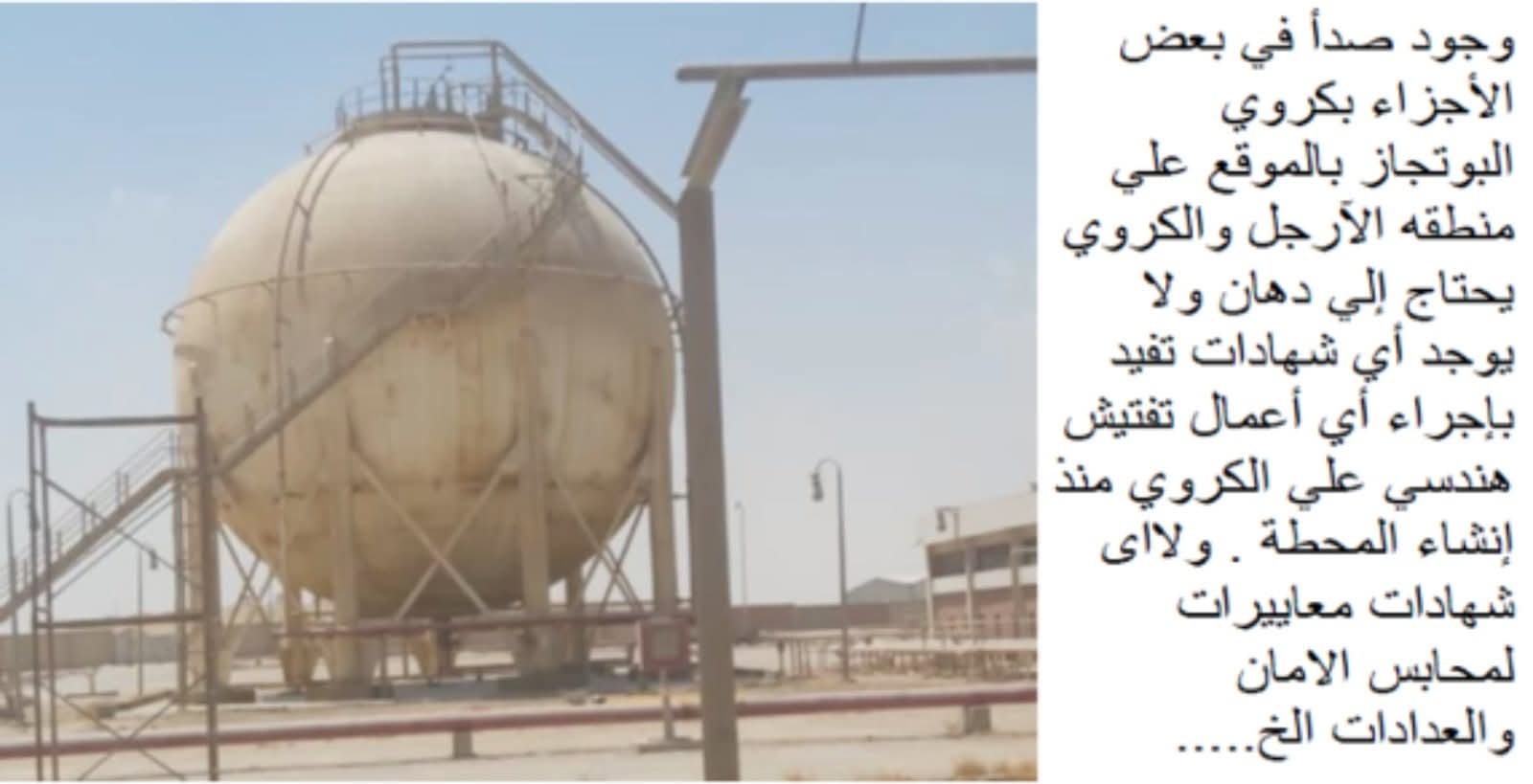 كما تم المرور على مستودع بوتاجاز بمحافظة السويس، وتبين افتقاره لأدنى معايير الأمان، ، وعطل معظم أجهزة الإطفاء، وعدم وجود أي أفراد إطفاء بالموقع، ووجود صدأ بأجزاء من كرات تخزين البوتاجاز المعد للتعبئة، وانتشار آثار تدخين السجائر بالقرب من الأماكن الخطرة، وعدم ارتداء العاملين لمهمات الوقاية الشخصية، فضلاً عن نقص شديد بأوزان الأسطوانات يصل إلى 5 كجم للأسطوانة. وتم التنبيه على الشركة المسئولة بسرعة استيفاء اشتراطات الأمان أو إيقاف الموقع لحين الاستيفاء حفاظاً على الأرواح ومنعاً لأي كوارث نتيجة الإهمال.