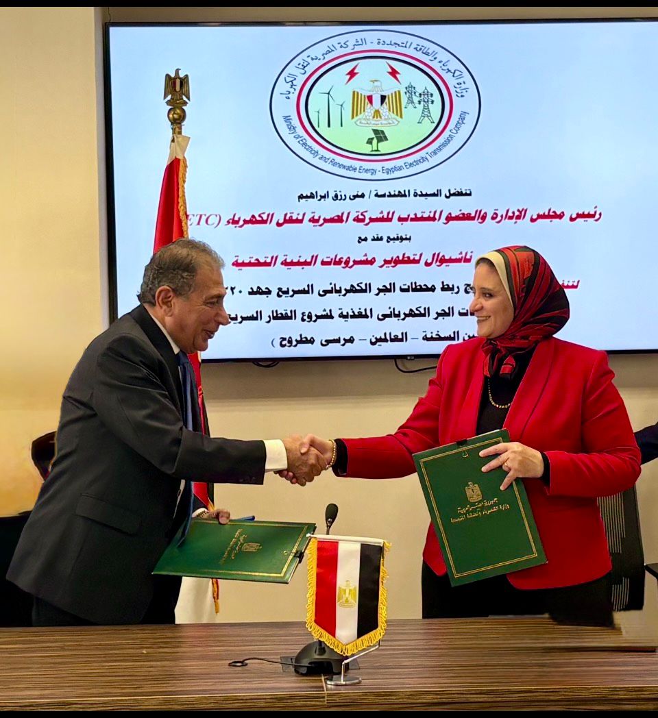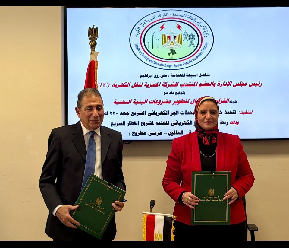 المصرية لنقل الكهرباء توقّع عقد تنفيذ خطوط ربط محطات الجر لمشروع القطار الكهربائي السريع بجهد 220 ك.ف.