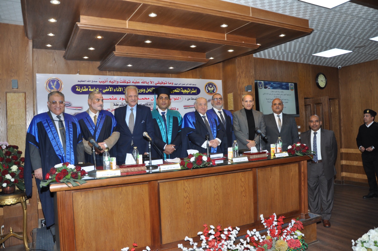 وترأس لجنة المناقشة والإشراف اللواء الدكتور/ محمد إبراهيم محمد أبو شادي أستاذ الاقتصاد والمالية العامة بكلية الشرطة ووزير التموين والتجارة الداخلية السابق، وضمّت اللجنة كلًا من الأستاذ الدكتور/ هشام محمد عبد الغفار البدوي أستاذ ورئيس قسم الشبكات بالمعهد القومي للاتصالات، واللواء الدكتور/ مجد الدين عبد الرازق عضو هيئة التدريس بقسم إدارة الشرطة، والأستاذ الدكتور/ محسن طنطاوي المشرف على مقررات المعهد القومي للاتصالات.