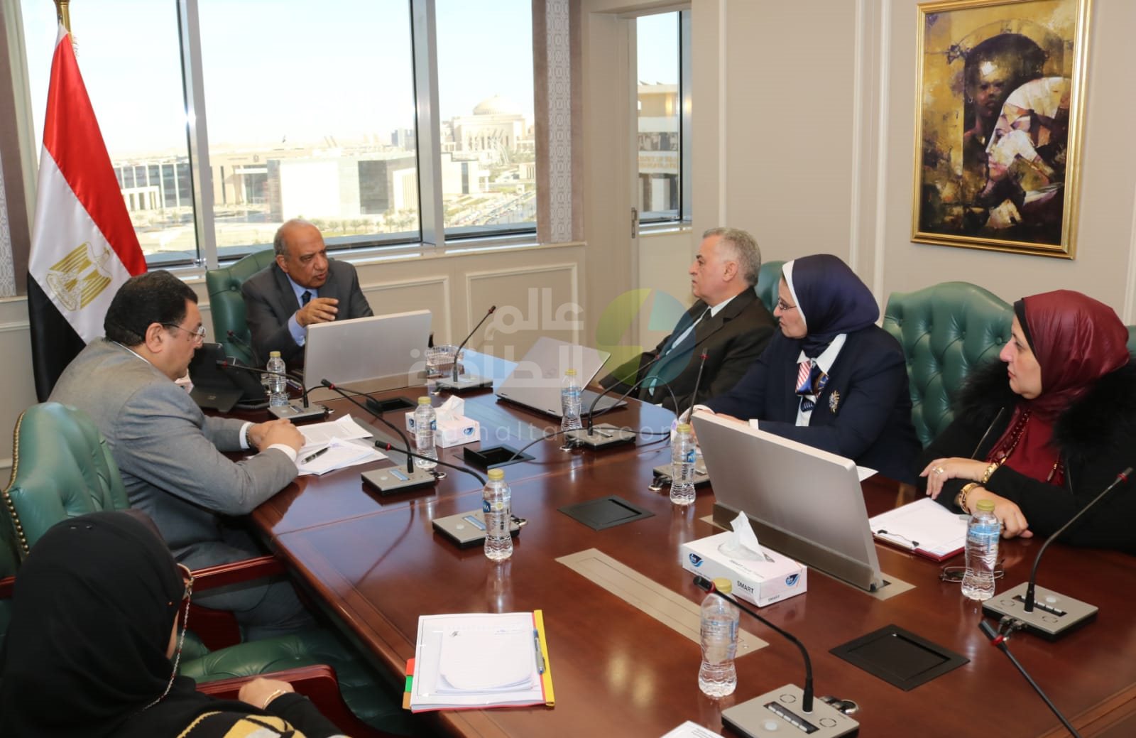 في إطار متابعته لمجريات تنفيذ خطة العمل على صعيد إنتاج ونقل وتوزيع الطاقة الكهربائية، وفى ضوء المراجعة المستمرة لمستجدات تنفيذ أعمال مشروعات دعم وتطوير وتقوية الشبكة القومية للكهرباء ، وزيادة قدرتها على استيعاب الطاقات المتجددة، ومجابهة ارتفاع الأحمال وزيادة الطلب على الكهرباء، وتوفير التغذية الكهربائية اللازمة لكافة الاستخدامات، ومشروعات التنمية الصناعية والزراعية والعمرانية في جميع المحافظات، اجتمع الدكتور محمود عصمت وزير الكهرباء والطاقة المتجددة ، بقيادات العمل ومسئولي تشغيل الشبكة ، بحضور الدكتور علي عبدالفتاح الوكيل الدائم، والدكتور محمد موسى رئيس جهاز تنظيم مرفق الكهرباء وحماية المستهلك، والمهندسة منى رزق رئيس الشركة المصرية لنقل الكهرباء ، لمتابعة سير العمل ومستجدات تنفيذ الخطة الديناميكية لدعم وتطوير وتشغيل الشبكة ، والمشروعات الجارى تنفيذها ، والاجراءات الخاصة بتحقيق الاستدامة المالية