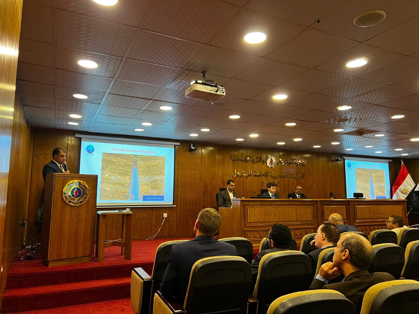 من جانبه، قدم المهندس رمزى حسين، عرضاً شاملاً لكل التكنولوجيا والخدمات المتطورة التى تقدمها الشركة بالتعاون مع شركائها الدوليين فى مصر والشرق الأوسط وأفريقيا، وعلى رأسها دقاقات الحفر ومعدات الانحراف والاصطياد وإصلاح واستكمال وتشغيل الآبار والقيسون المعلق وإكسسوارات القيسون، إلى جانب سابقة الأعمال الناجحة الخاصة بالشركة داخل مصر وخارجها.