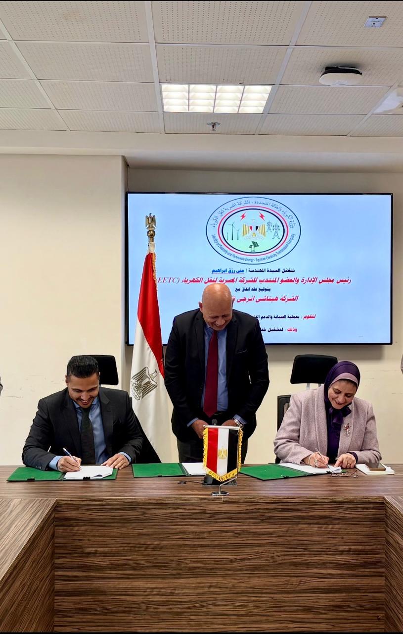 وقّعت اليوم المهندسة منى رزق، رئيس مجلس إدارة الشركة المصرية لنقل الكهرباء، عقدًا جديدًا مع شركة هيتاشي إنيرجي تكنولوجي ومثّلها في التوقيع المهندس هاشم مالك المدير الاقليمي للصيانة ،