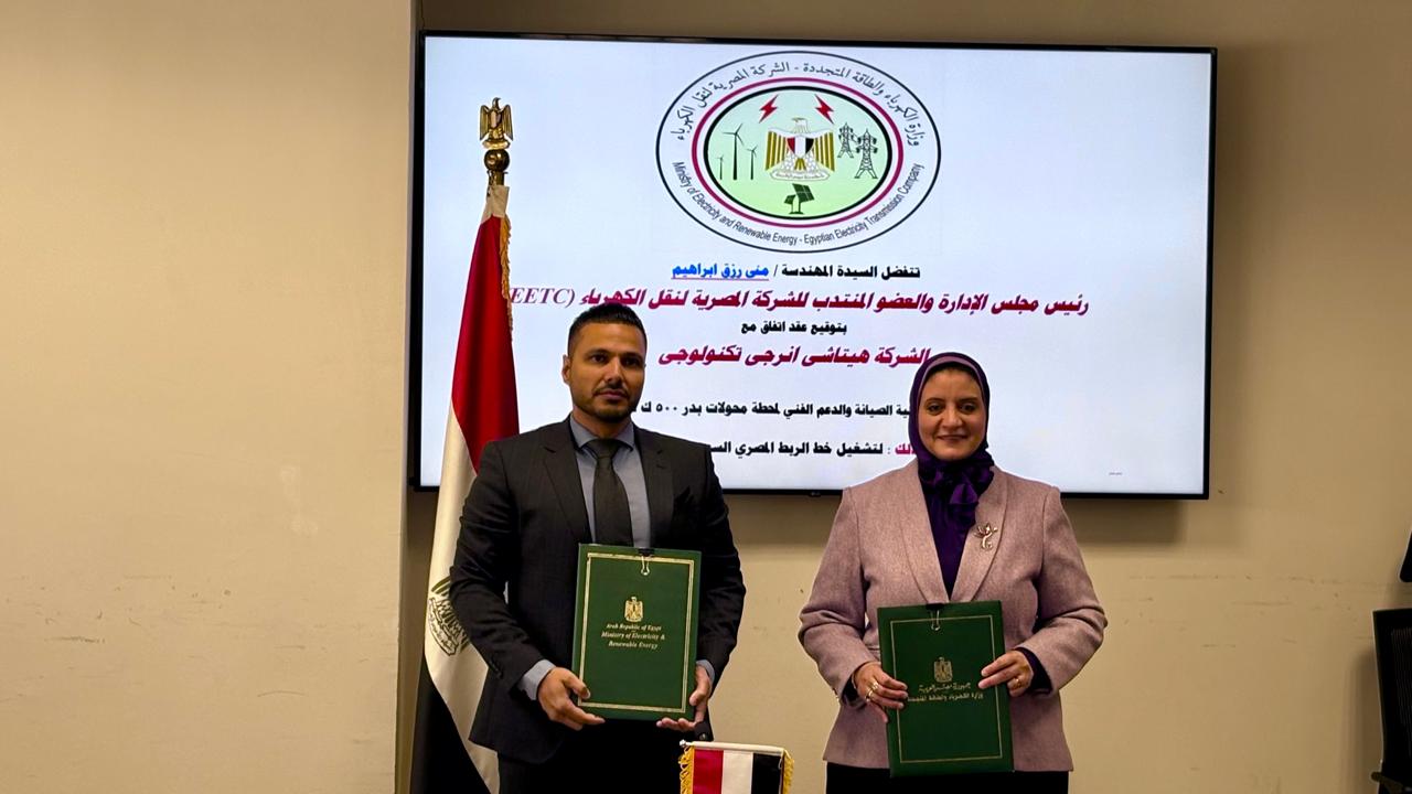 المصرية لنقل الكهرباء توقع عقدًا مع هيتاشي إنيرجي لتشغيل محطتين ضمن الربط الكهربائي المصري- السعودي