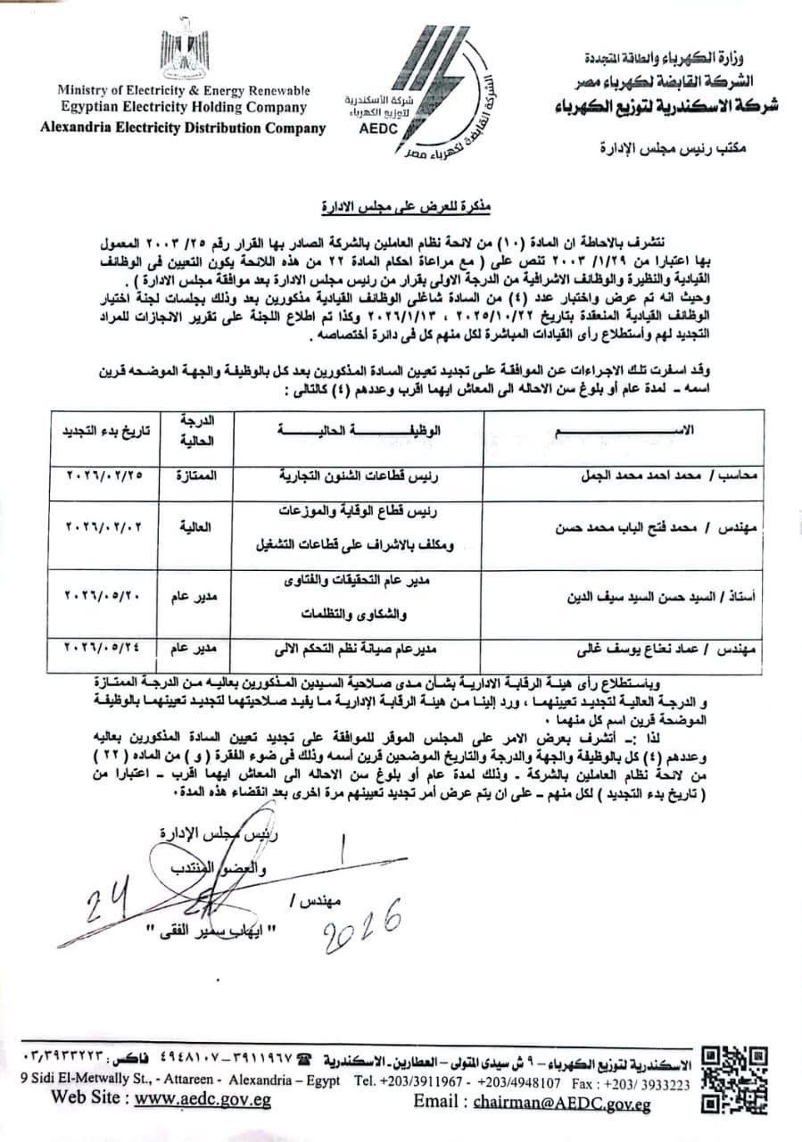 يأتي ذلك في ضوء رؤية الشركة لتطوير منظومة العمل، ورفع كفاءة الأداء، وبناءً على توجيهات وزارة الكهرباء والطاقة المتجددة، والشركة القابضة لكهرباء مصر، حيث أصدر المهندس إيهاب الفقي، رئيس شركة الإسكندرية لتوزيع الكهرباء، قرارًا باعتماد حركة ترقيات واسعة شملت القطاعات الهندسية والتجارية والإدارية والقانونية.