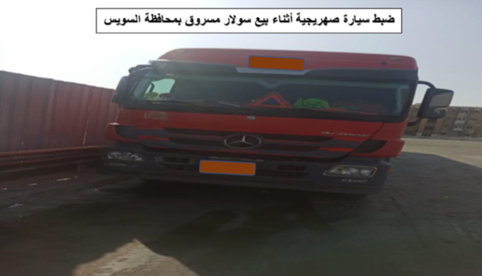 في محافظة السويس، تم ضبط سائق سيارة صهريجية أثناء محاولة بيع كمية من السولار المسروق.