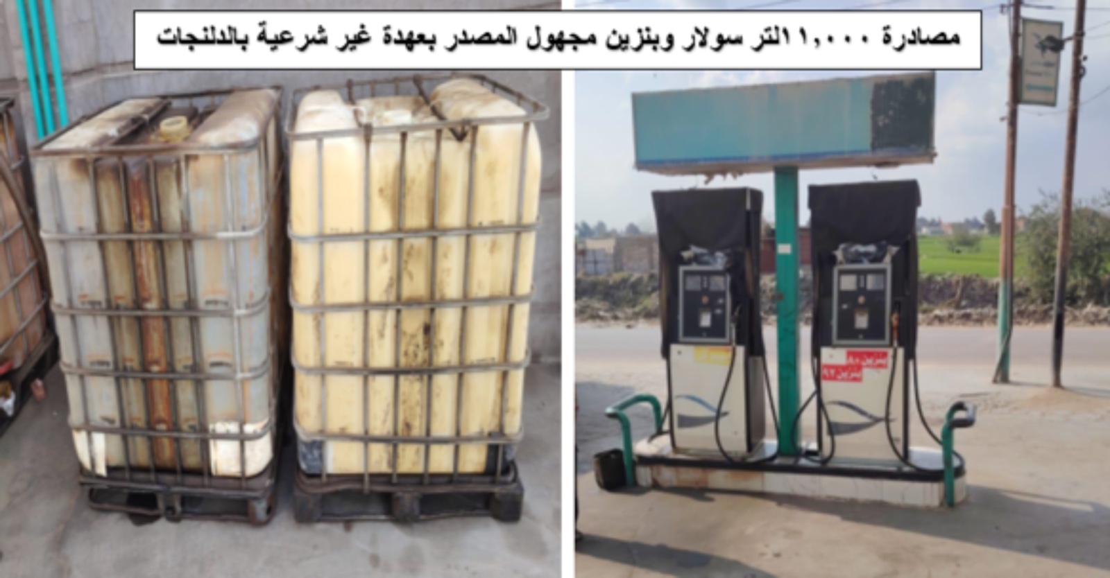 وفي مدينة الدلنجات بمحافظة البحيرة، تم مصادرة 11 ألف لتر سولار وبنزين مجهول المصدر داخل نقطة بيع غير شرعية.