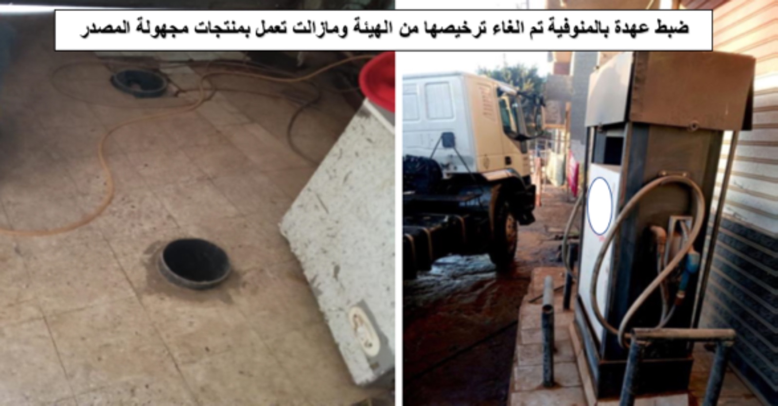 وفي إطار استمرار جهود مكافحة ظاهرة نقاط التموين غير المرخصة، تمكنت اللجنة خلال المرور الميداني من ضبط نقطة غير شرعية بمركز أشمون بمحافظة المنوفية، كما تم ضبط محطة بمحافظة المنوفية سبق إلغاء ترخيصها من الهيئة، ومع ذلك استأنف صاحبها التشغيل بمنتجات مجهولة المصدر بالمخالفة للقانون.