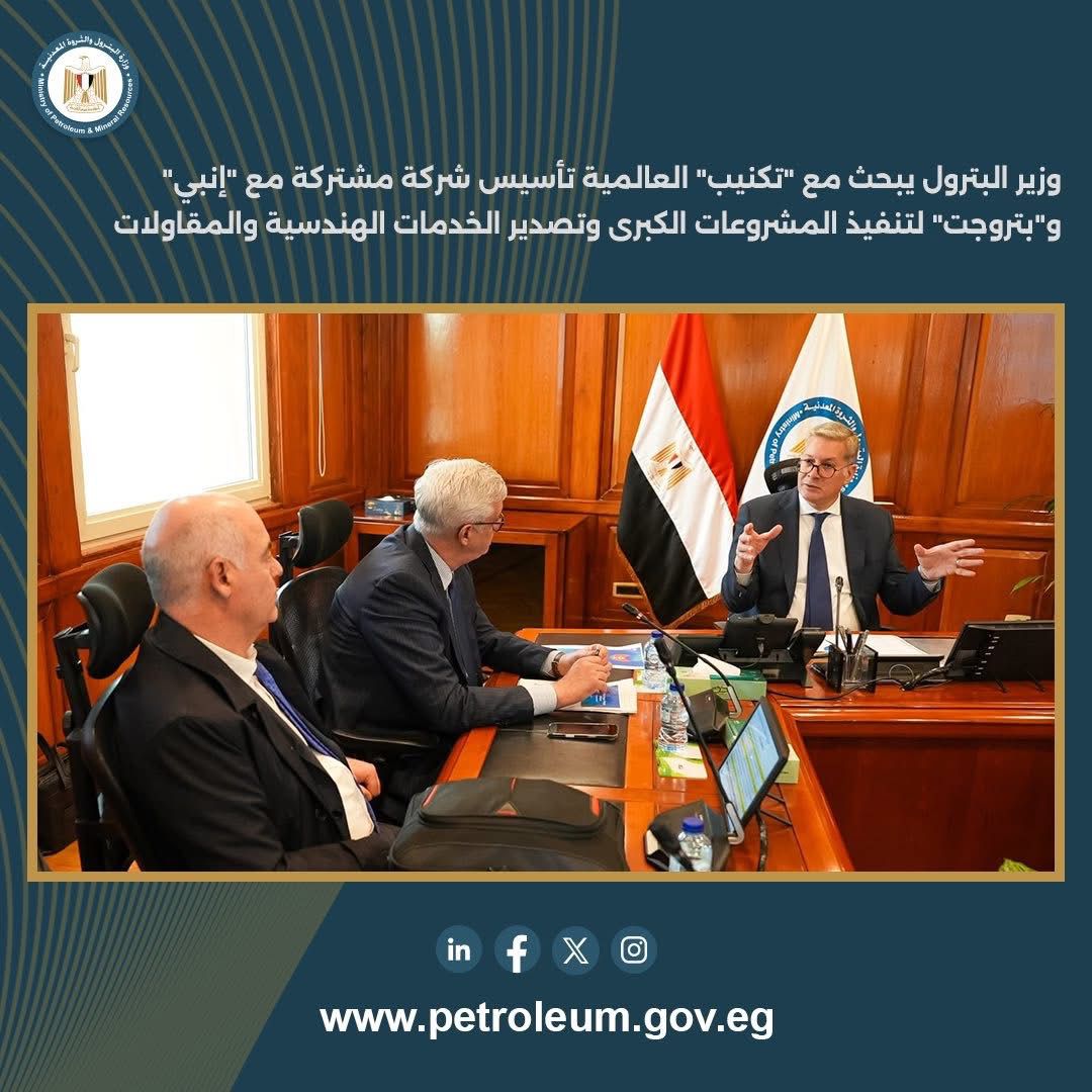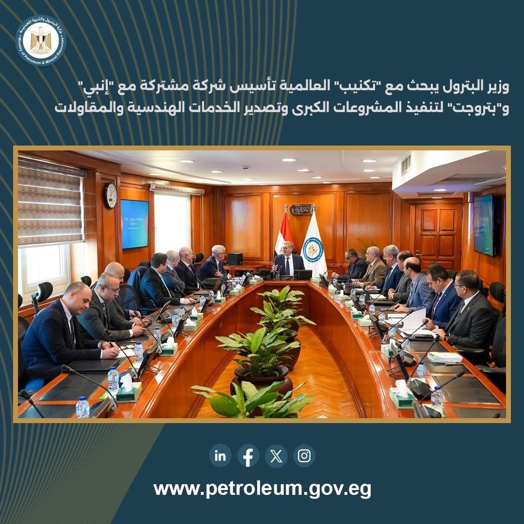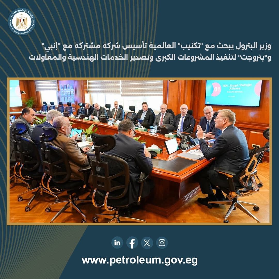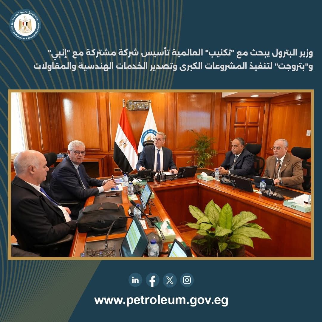 وزير البترول يبحث مع "تكنيب" العالمية تأسيس شركة مشتركة مع "إنبي" و"بتروجت" لتنفيذ مشروعات كبرى