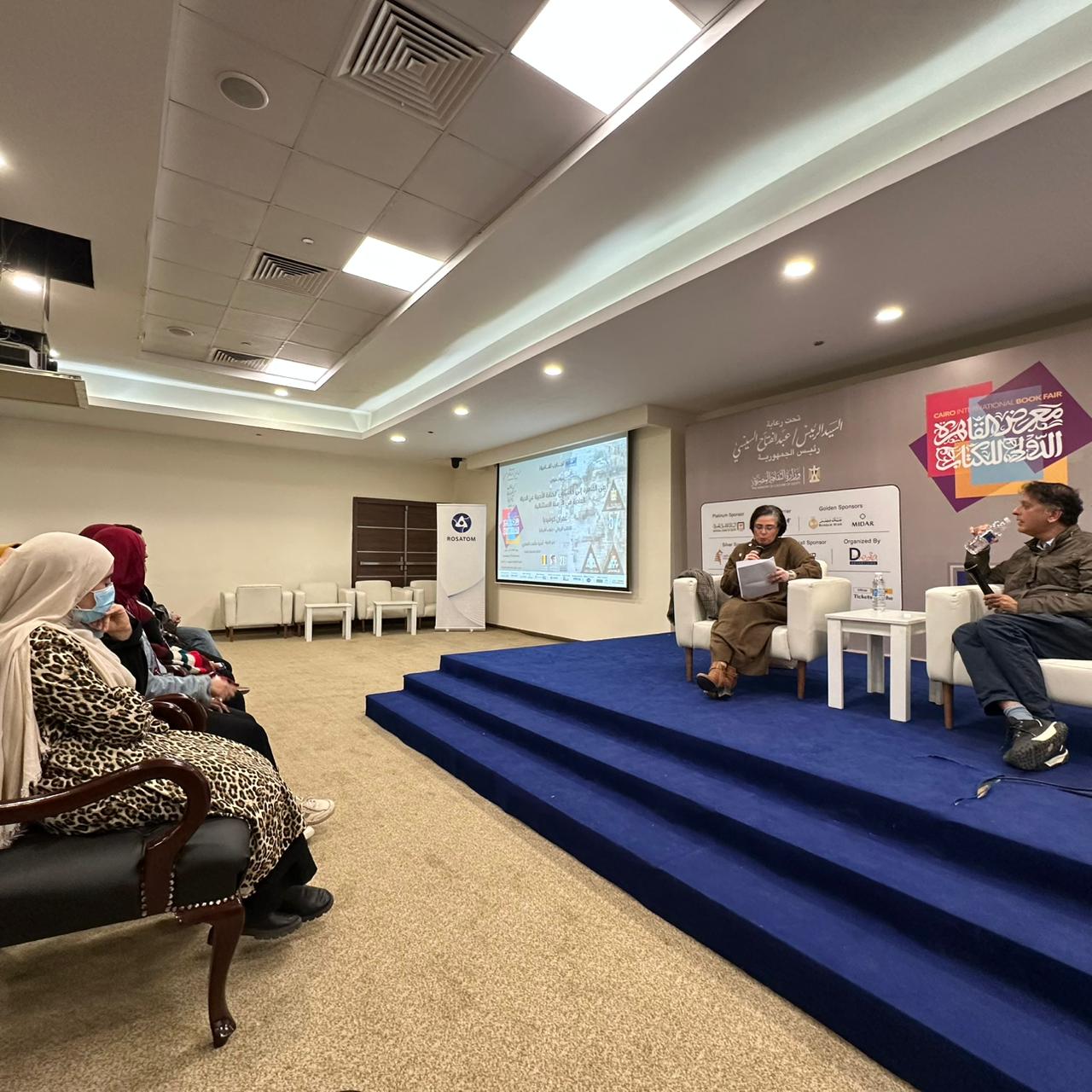 وفي إطار برنامجها الثقافي والتوعوي، نظمت روساتوم أيضًا جلسة أدبية بعنوان «الكتابة عن الحياة العادية في الأزمنة الاستثنائية». وشارك في الجلسة الكاتب والأكاديمي الجنوب أفريقي المعروف عمـران كوفاديا، الحائز على جائزة "ماضي المستقبل" الدولية للأدب والخيال العلمي، التي أسسها صندوق "أتوم" بدعم من شركة روساتوم. وقد ناقش المشاركون خلال الجلسة كيف يمكن توظيف الخيال والسرد القصصي في تبسيط وشرح التقنيات المعقدة، بما في ذلك الطاقة النووية، وذلك من خلال ربط المفاهيم العلمية بأمثلة من الحياة اليومية للإنسان. وأدارت الجلسة الكاتبة والناقدة الأدبية المصرية أمنية طلعت.