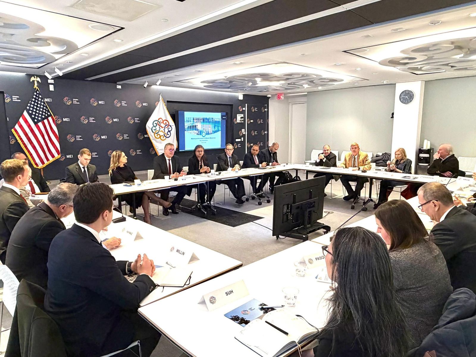 استضاف معهد الشرق الأوسط بواشنطن MEI ، المهندس كريم بدوي وزير البترول والثروة المعدنية في لقاء مائدة مستديرة موسع بحضور لفيف من الخبراء والمتخصصين في شئون الشرق الأوسط ، حيث جري إلقاء الضوء علي الدور المحوري لمصر كمركز إقليمي لتداول وتجارة الطاقة