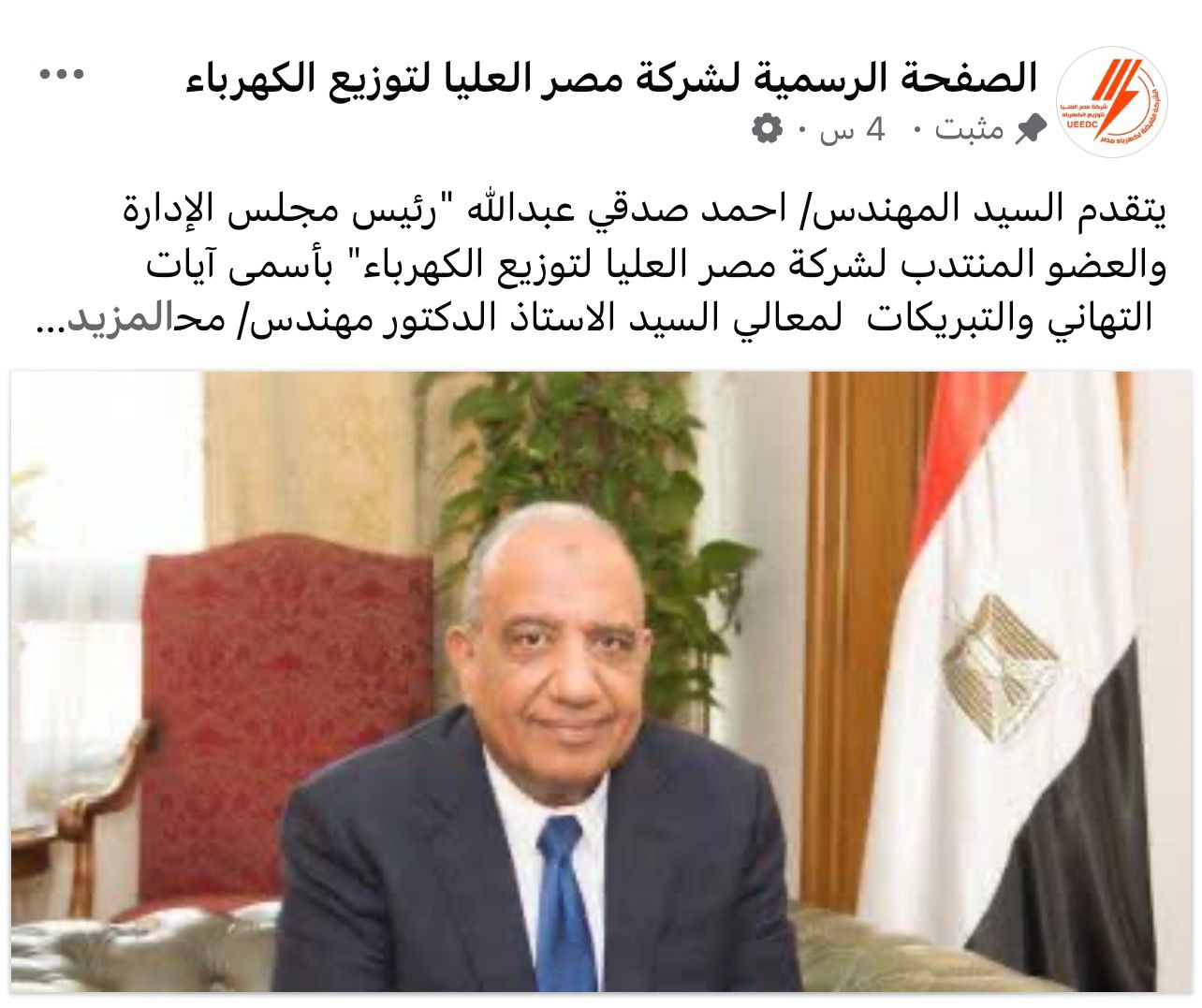 كما تقدم جميع رؤساء شركات التوزيع بخالص التهاني القلبية لوزير الكهرباء والطاقة المتجددة بمناسبة تجديد الثقة يتقدمهم كلا من المهندس حسن البيلي رئيس مجلس ادارة شركة شمال القاهرة لتوزيع الكهرباء ، المهندس رأفت شمعه رئيس شركة مصر الوسطي لتوزيع الكهرباء ، المهندس سامي ابو ورده رئيس شركة القناة لتوزيع الكهرباء ، المهندس احمد صدقي رئيس مجلس ادارة شركة مصر العليا لتوزيع الكهرباء ، المهندس ايهاب الفقي رئيس مجلس ادارة شركة الإسكندرية لتوزيع الكهرباء ، المهندس خالد الغمرى رئيس مجلس ادارة شركة جنوب الدلتا لتوزيع الكهرباء ، المهندس بهجت عبد الحليم رئيس مجلس ادارة شركة البحيرة لتوزيع الكهرباء وقيادات الشركات وأعضاء مجالس الادارات والقيادات والعاملين بجميع شركات التوزيع ٠٠٠