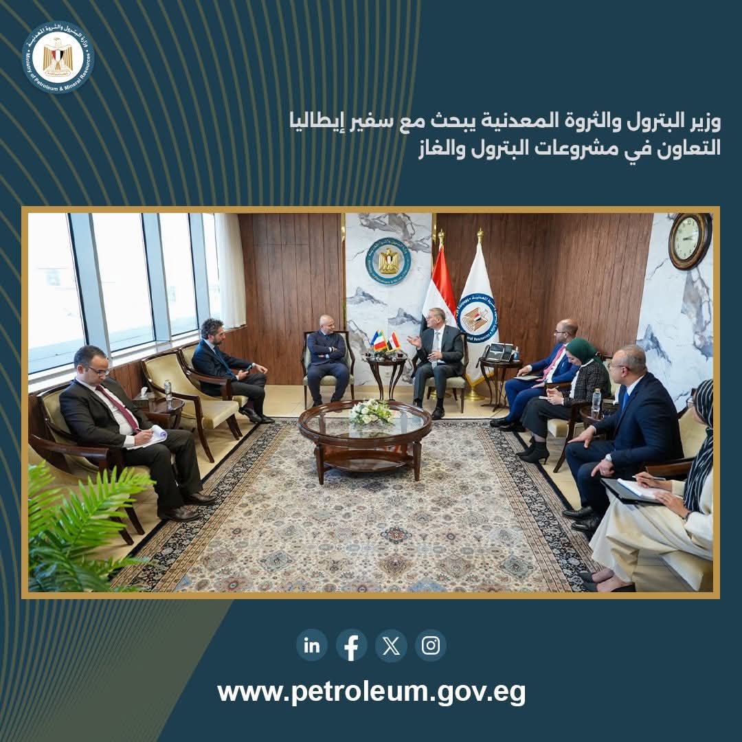 وأوضح الوزير أن الوزارة تولي اهتماماً كبيراً لتوفير البيئة الاستثمارية الملائمة للشركات العالمية، بما يسهم في زيادة معدلات الإنتاج وتأمين إمدادات الطاقة، مثمناً الدور الحيوي الذي تطلع به الاستثمارات الإيطالية في هذا الصدد.
