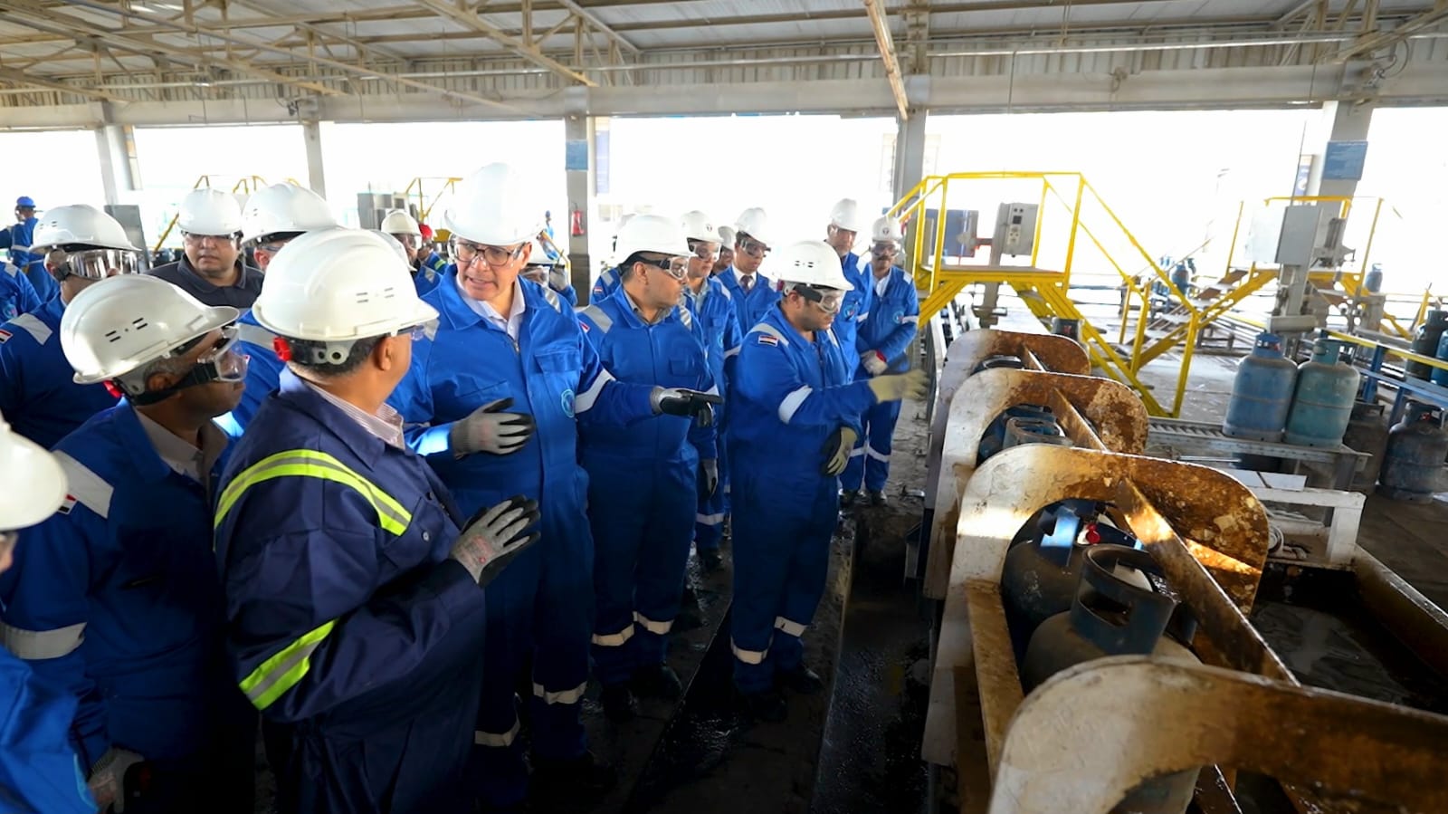 واطلع الوزير على مراحل العمل المختلفة بدءاً من اختبار صلاحية الأسطوانة قبل التعبئة وتجهيزها بوسائل الأمان، و التأكد من الأوزان المعتمدة ، ثم إعادة اختبارها بعد التعبئة لضمان سلامتها قبل التداول ، كما تابع مجريات العمل مع العاملين بمظلات التعبئة، مؤكدا على الدعم الكامل لهم باعتبارهم الثروة الحقيقية وركيزة العملية الإنتاجية مهنئاً إياهم بالشهرالكريم