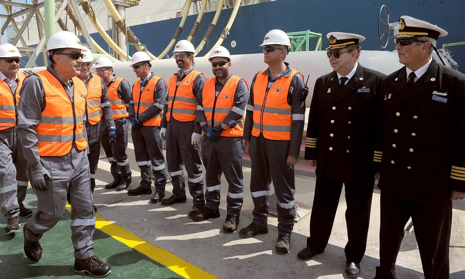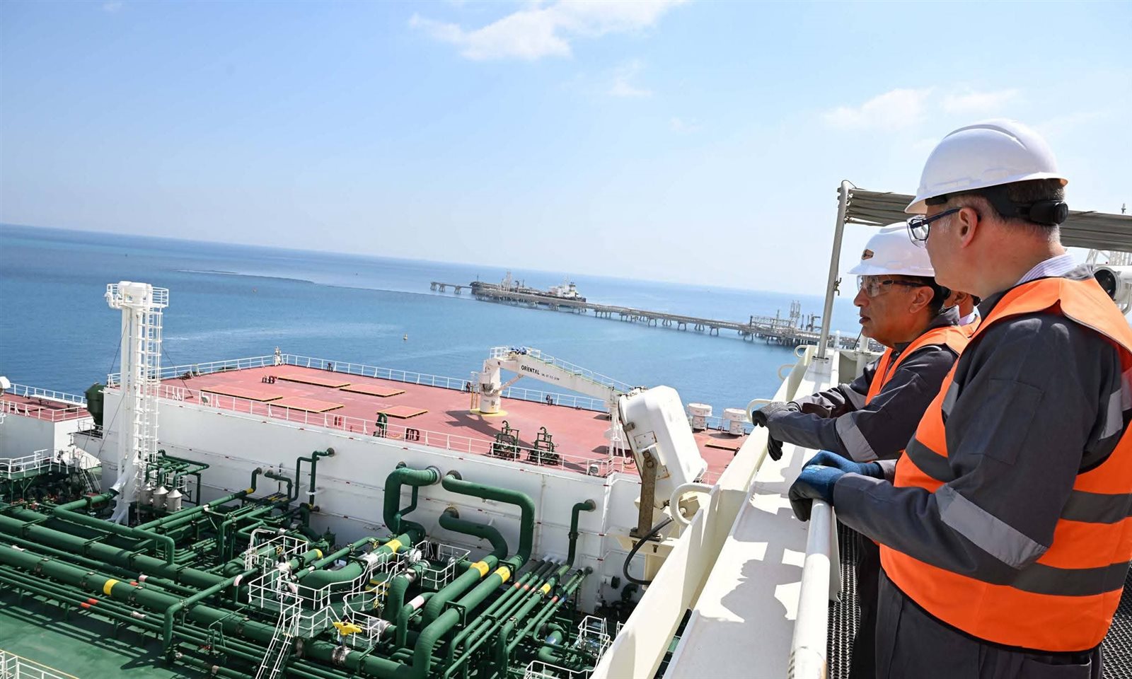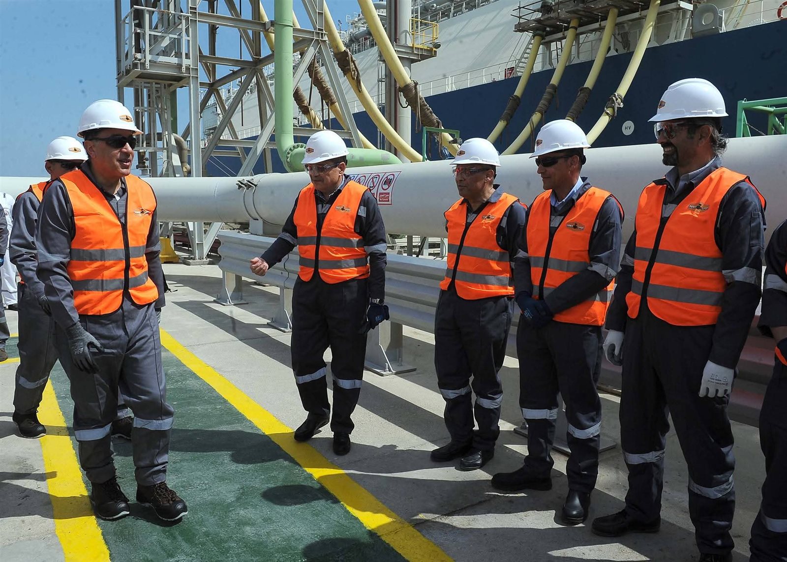 وخلال ذلك، صعد رئيس الوزراء إلى وحدة التغويز حتى وصل لنقطة المشاهدة المطلة على السفينة المحملة بشحنة الغاز المسال؛ لمتابعة إجراءات عملية التغويز.