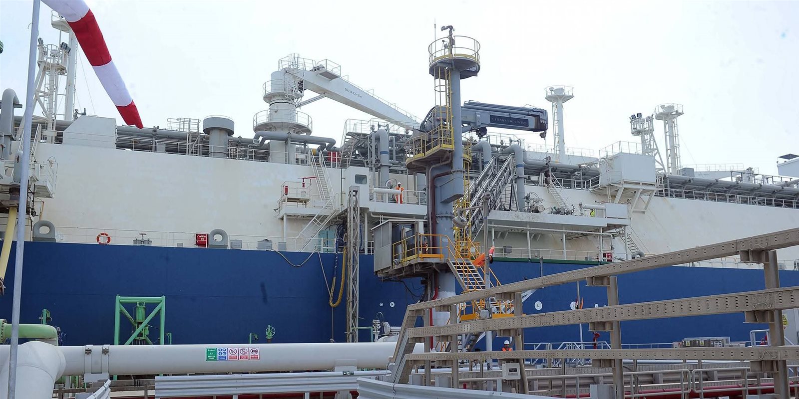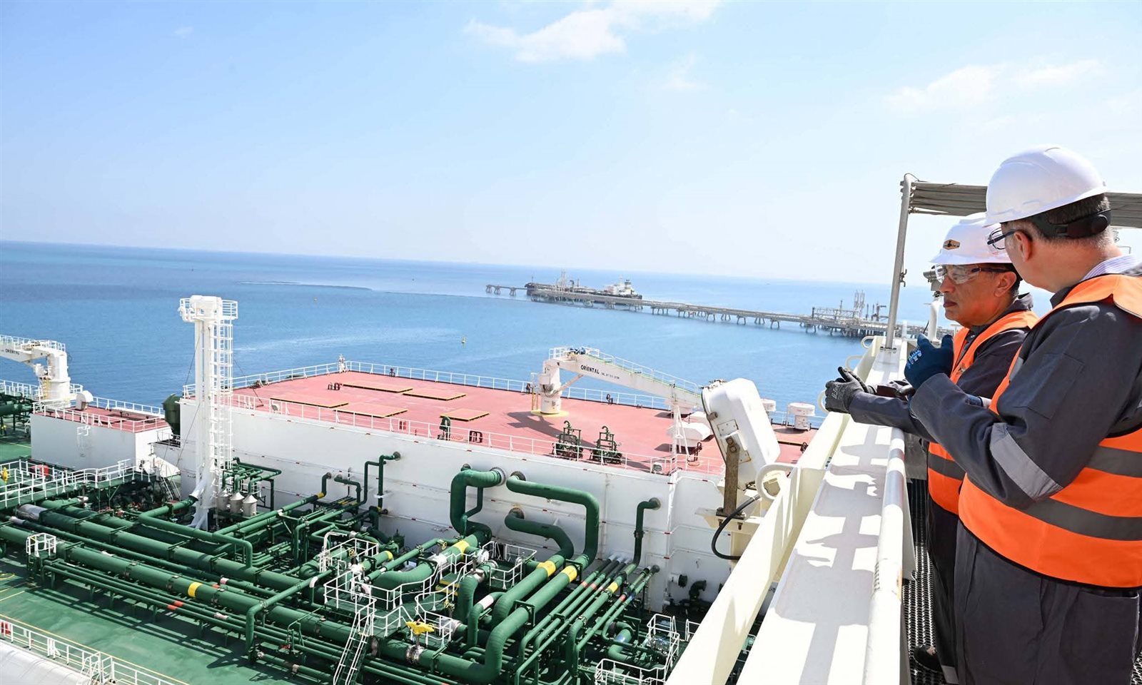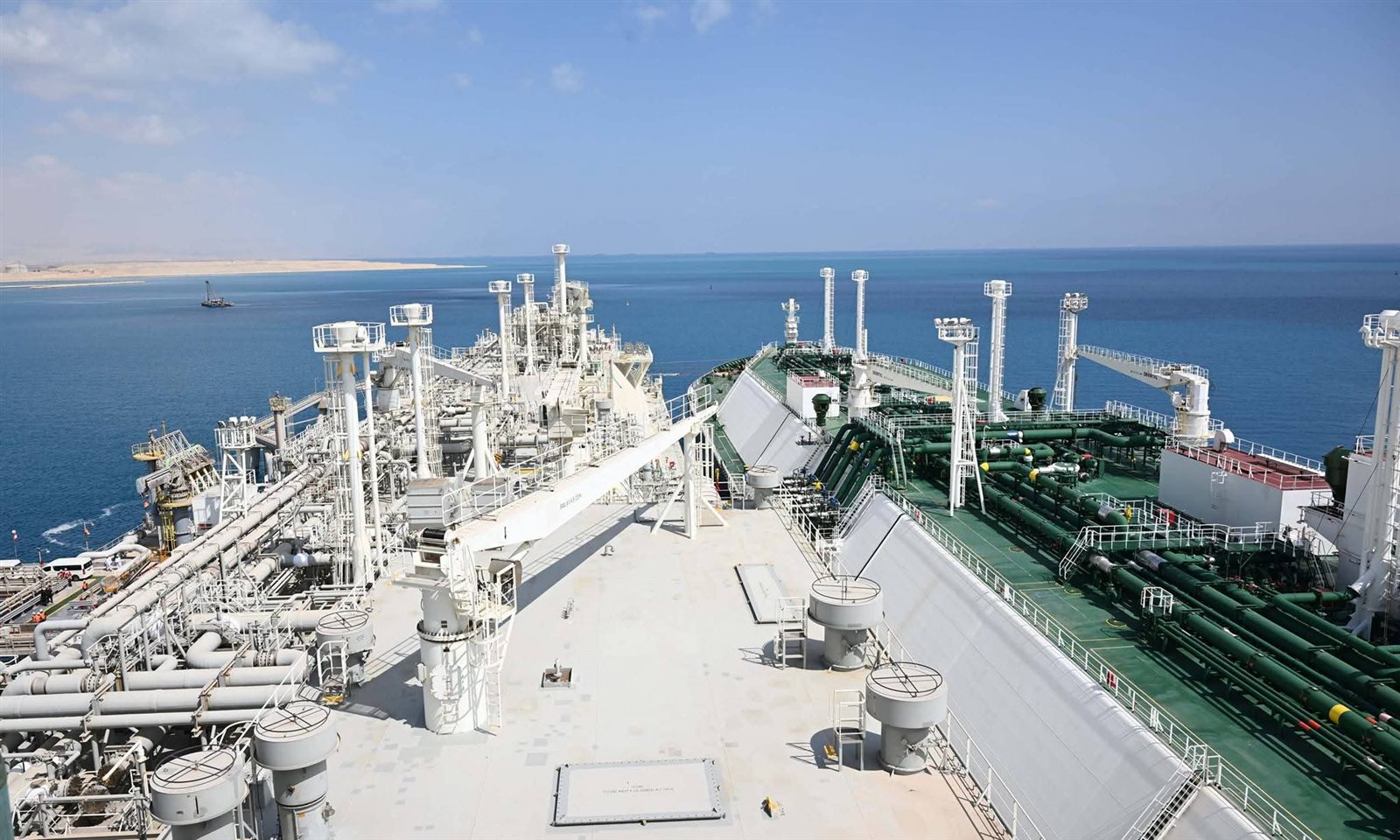 وخلال ذلك، صعد رئيس الوزراء إلى وحدة التغويز حتى وصل لنقطة المشاهدة المطلة على السفينة المحملة بشحنة الغاز المسال؛ لمتابعة إجراءات عملية التغويز.
