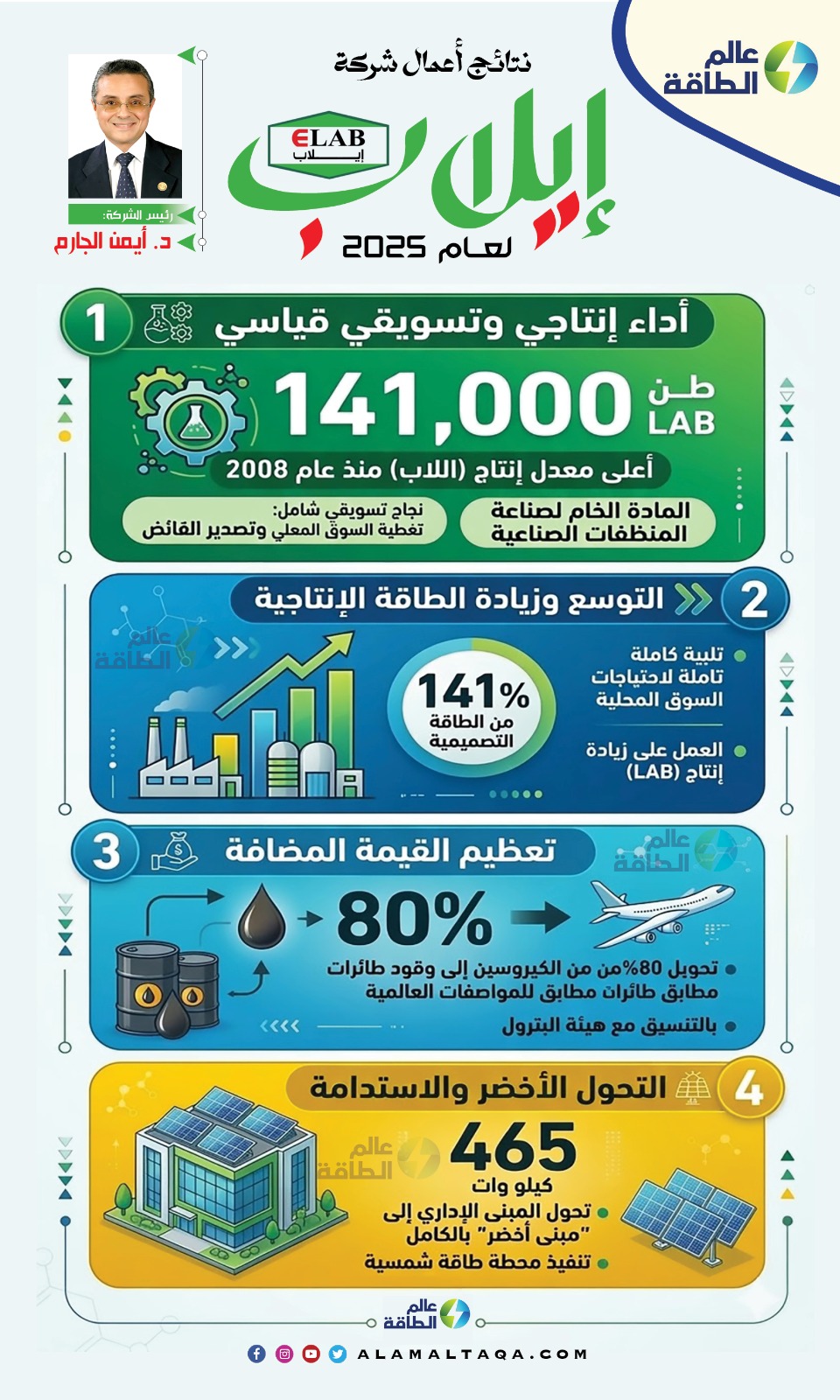 بالإنفوجراف.. نتائج أعمال شركة «إيلاب» عن العام المالي 2025 الثلاثاء 10/مارس/2026 - 11:28 ص 3/10/2026 11:28:35 AM شارك شارك