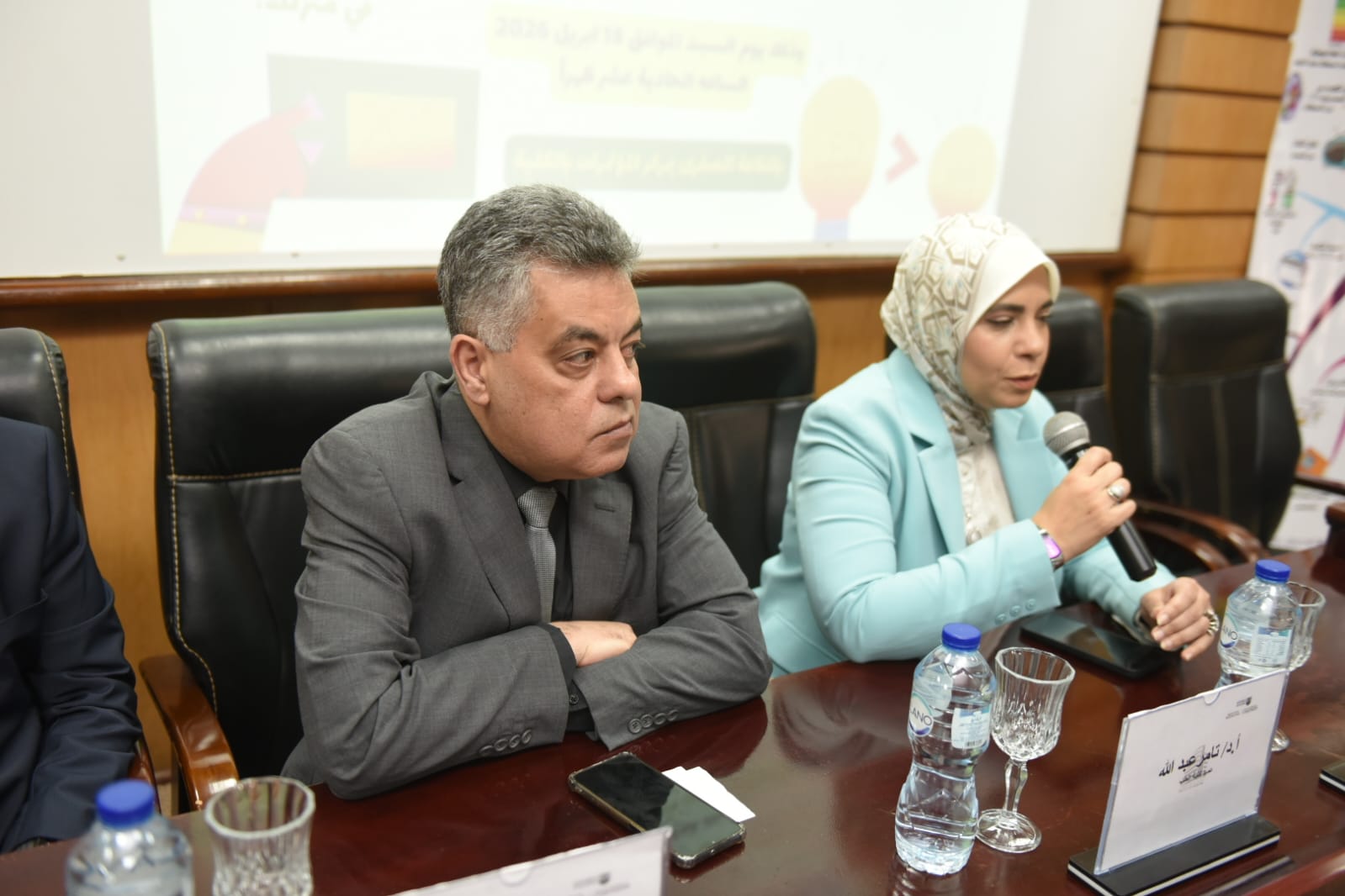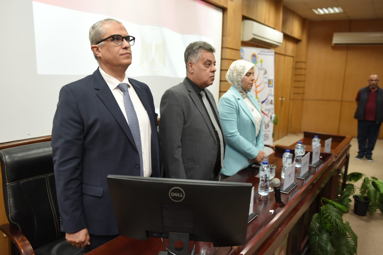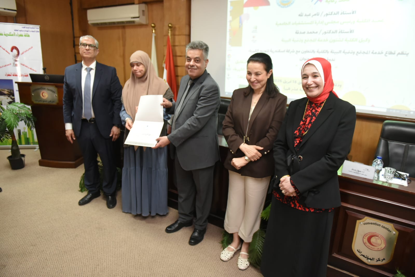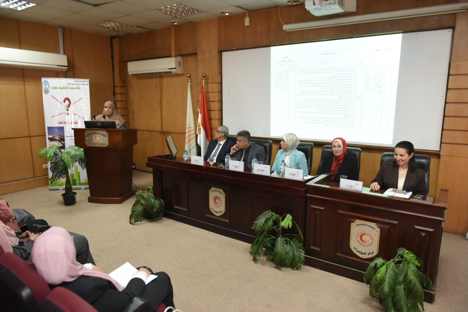المهندسة /حنان مرسى رئيس قطاع البحوث والجودة وترشيد استخدام الطاقة الكهربائية والدكتورة المهندسة / هناء كراويه مدير عام ترشيد الطاقة والمهندسة / شهيرة أحمد عبد الجواد مهندس أول بقطاع ترشيد الطاقة و بحضور من جامعة الإسكندرية السادة / الأستاذة الدكتورة / عفاف العوفى نائب رئيس جامعة الإسكندرية لخدمة المجتمع وتنمية البيئة